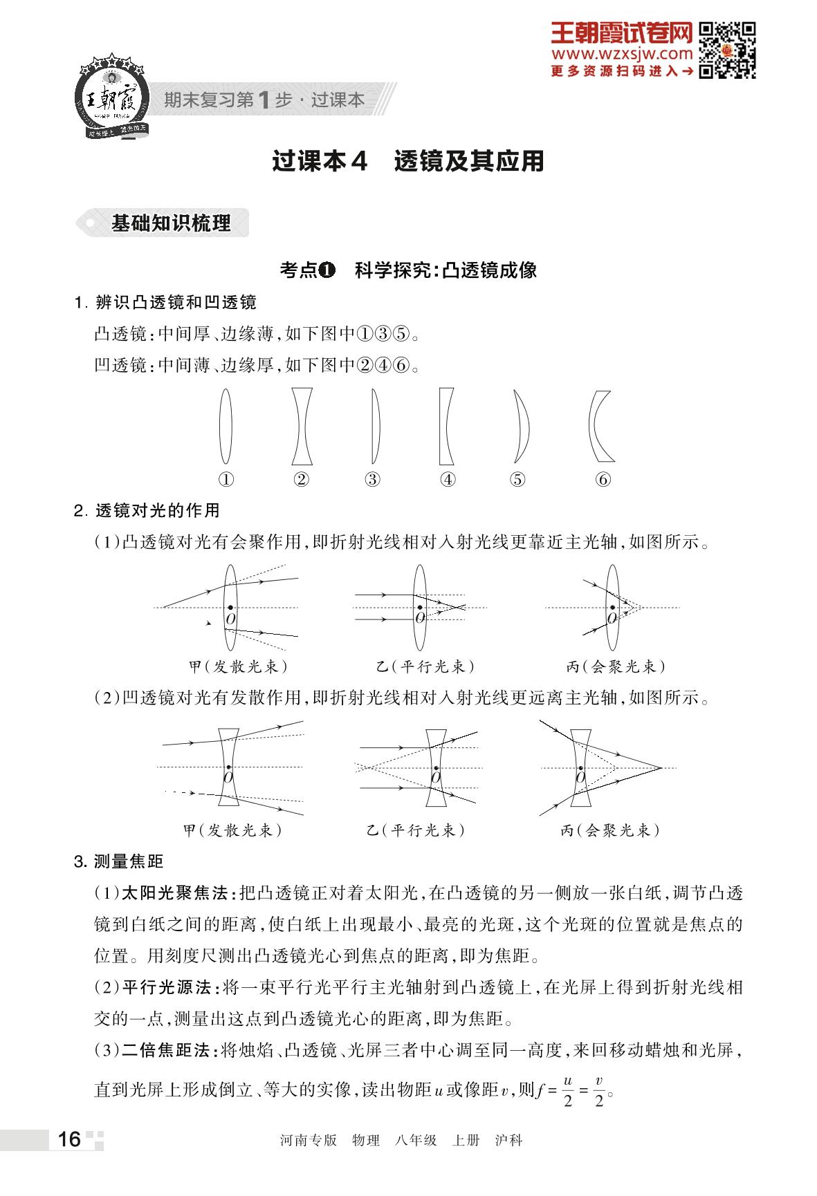 王朝霞期末过课本——4 透镜及其应用八年级上册物理(沪科版)