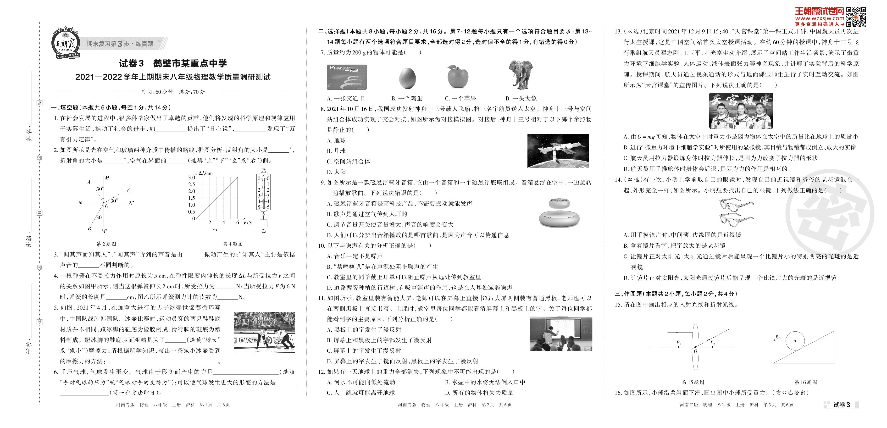 鹤壁市某重点中学2021—2022学年上期期末八年级物理教学质量调研测试(沪科版)【3】