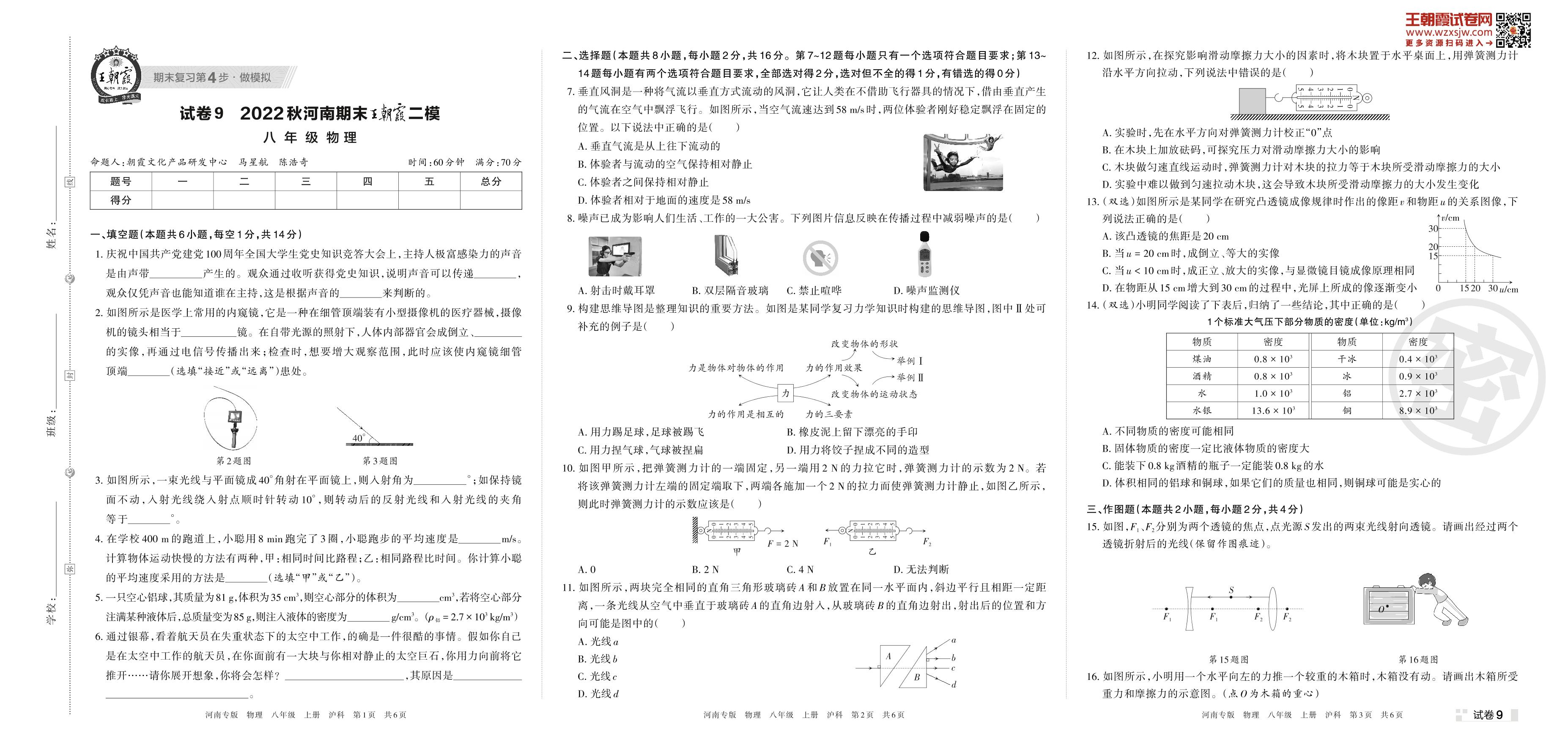 2022-2023学年第一学期王朝霞期末模拟卷八年级物理(沪科版)_R221114162509069【9】