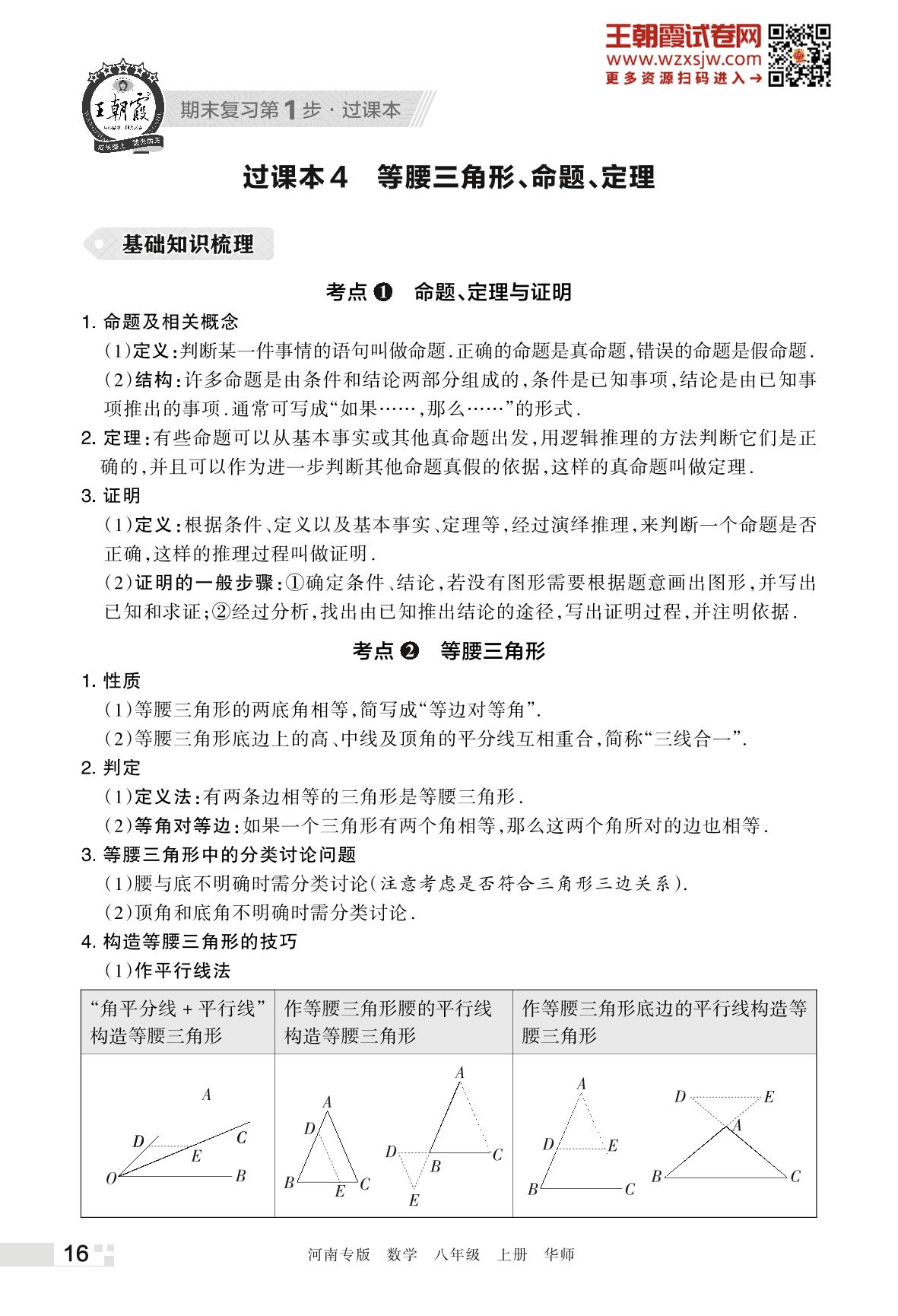 王朝霞期末过课本——4 等腰三角形、命题、定理八年级上册数学(华师版)