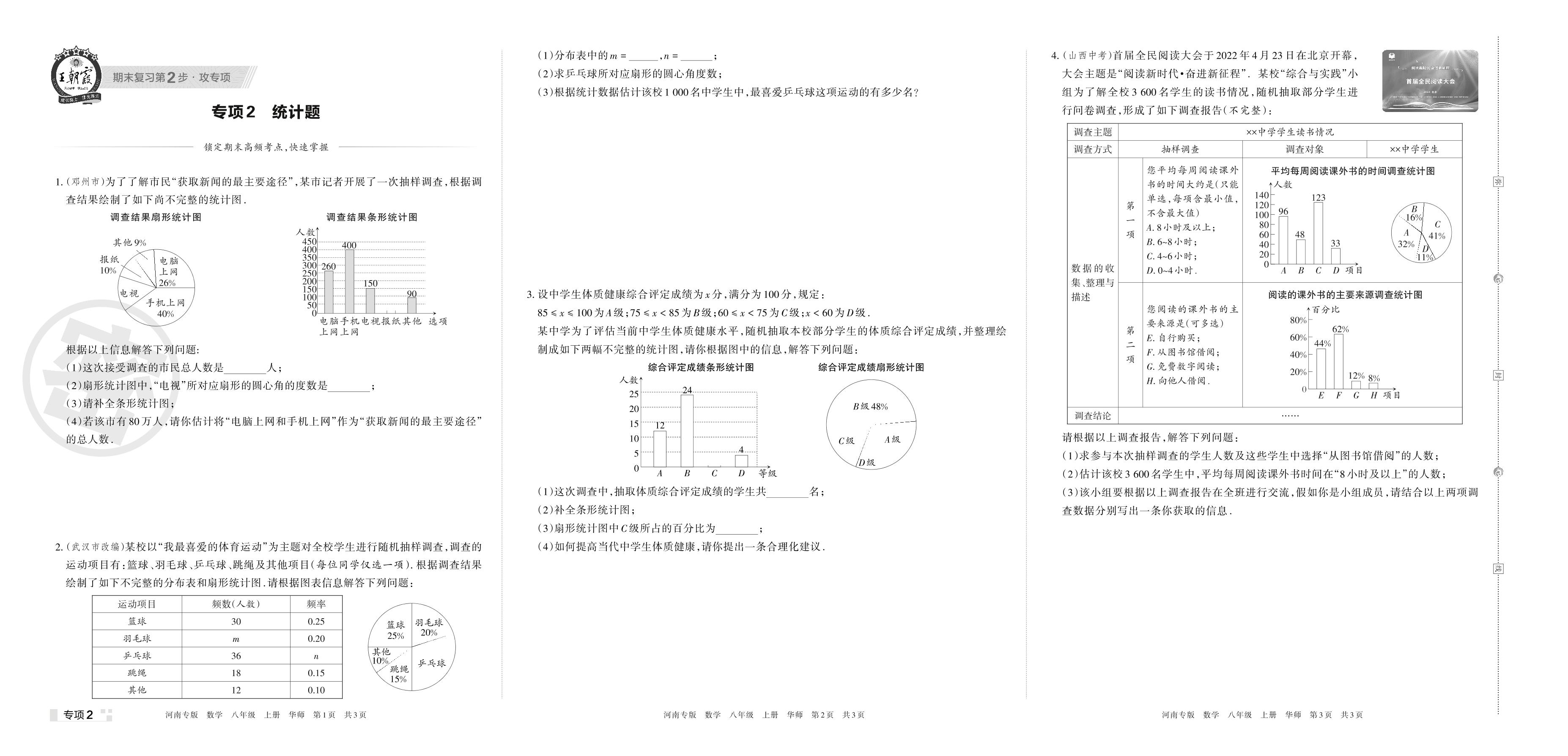 王朝霞期末专项卷——统计题八年级上册数学(华师版)【2】