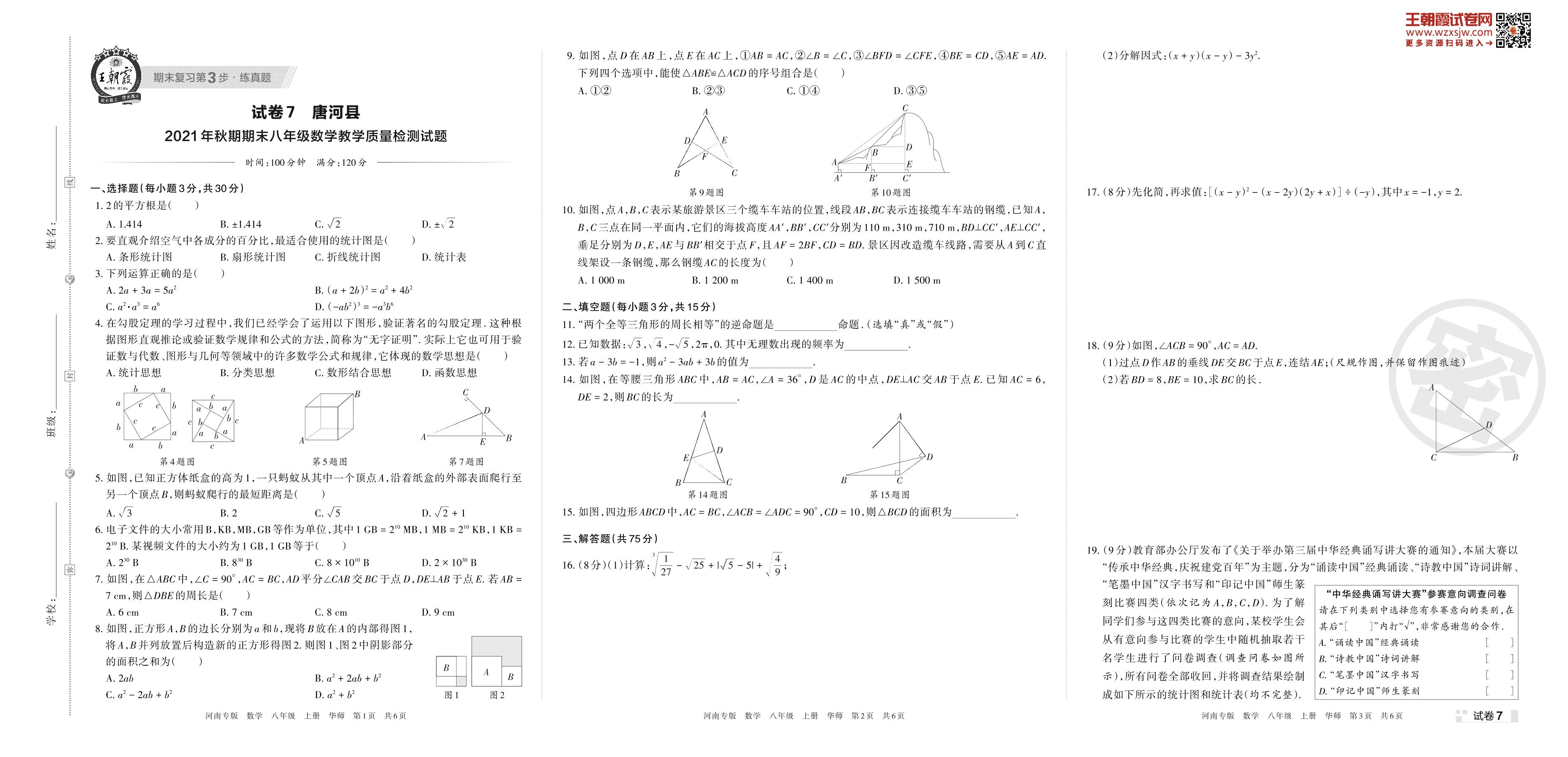 唐河县2021年秋期期末八年级数学教学质量检测试题 (华师版)【7】