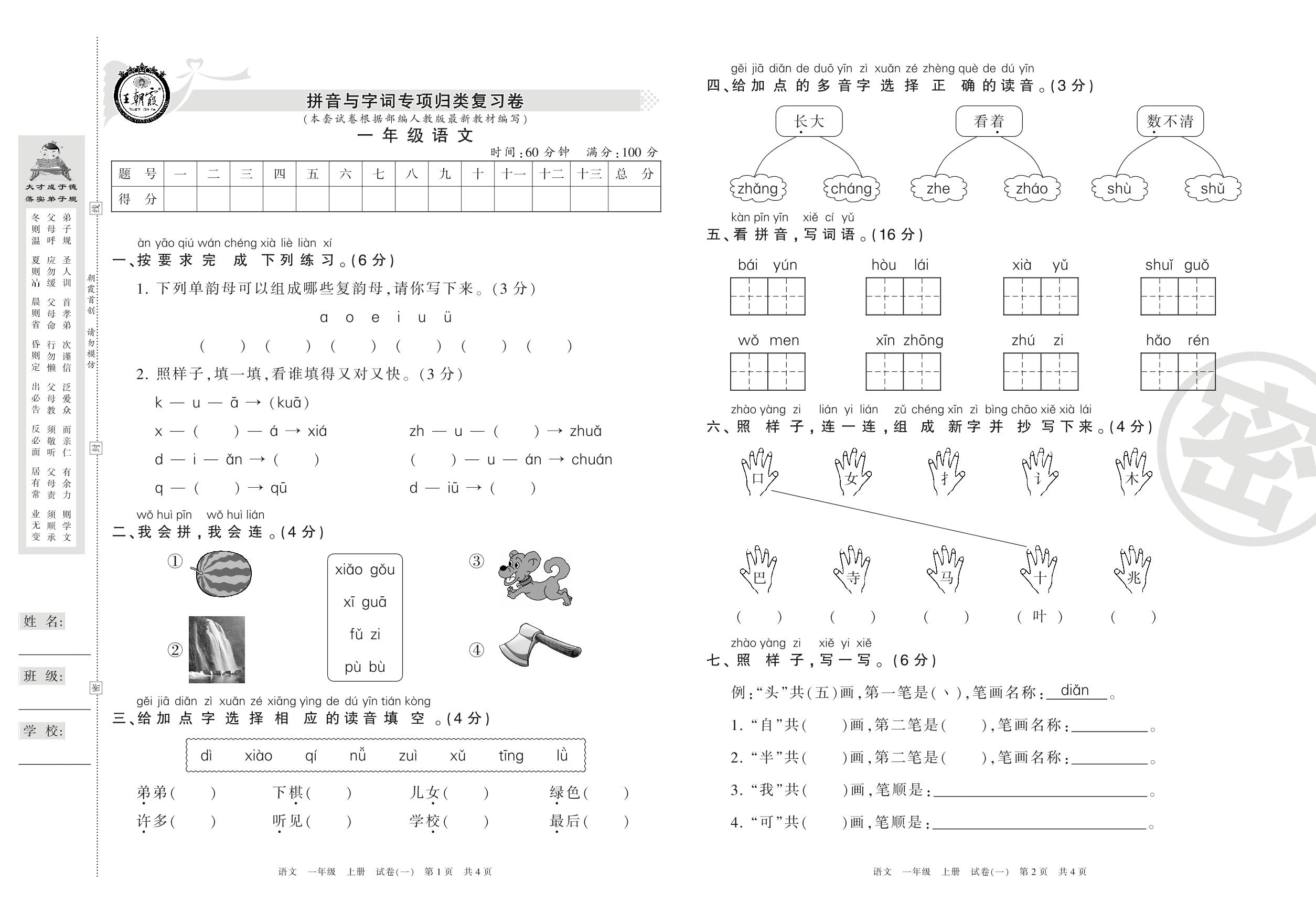 王朝霞期末专项卷一年级上册语文(人教版)_R210731184713【1】
