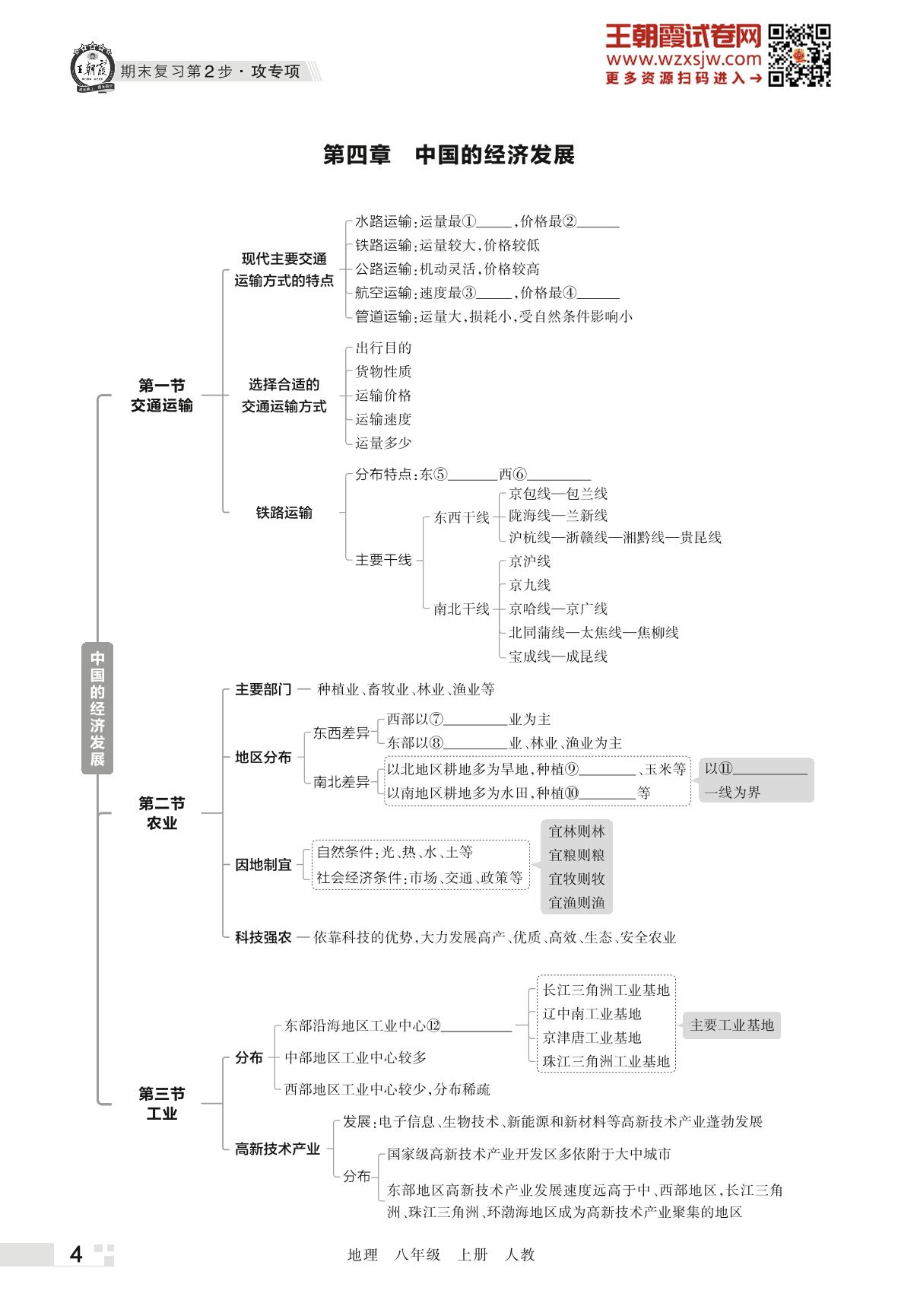 王朝霞期末专项卷——中国的经济发展(思维导图)八年级上册地理(人教版)【4】