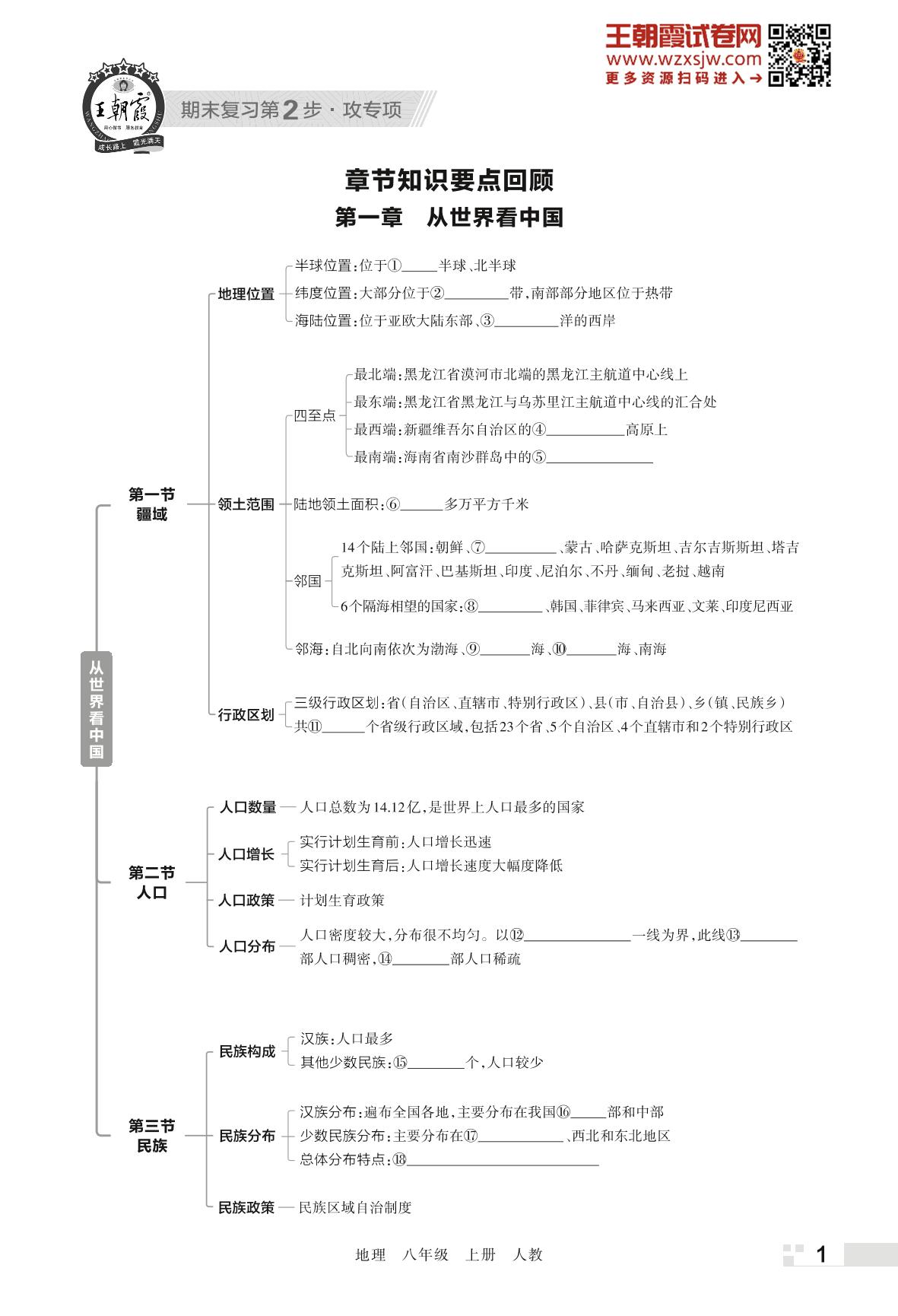 王朝霞期末专项卷——从世界看中国(思维导图)八年级上册地理(人教版)【1】