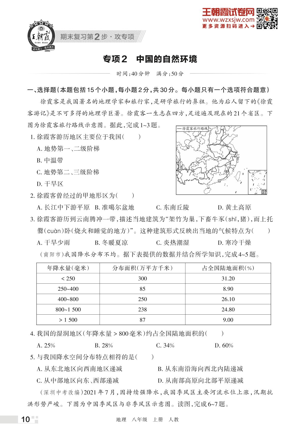 王朝霞期末专项卷——中国的自然环境八年级上册地理(人教版)【2】