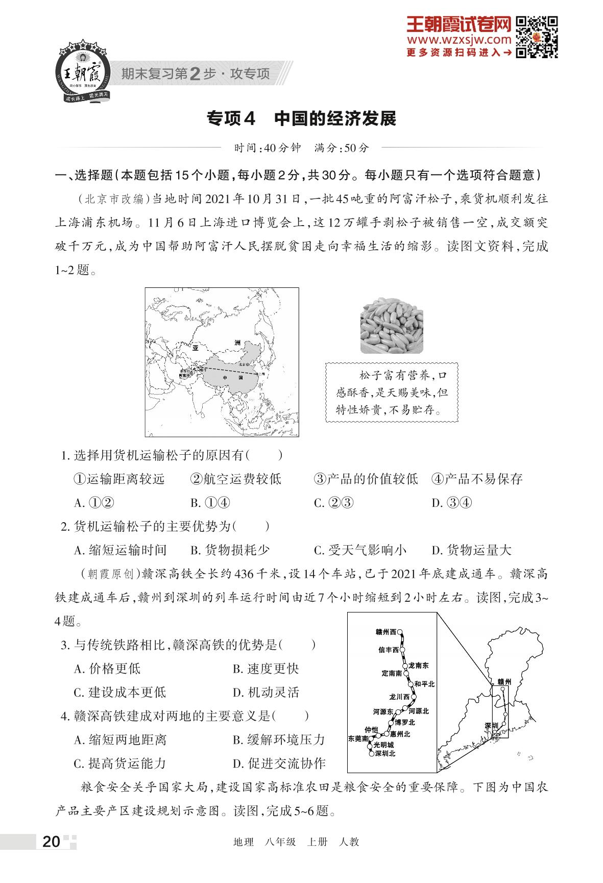 王朝霞期末专项卷——中国的经济发展八年级上册地理(人教版)【4】