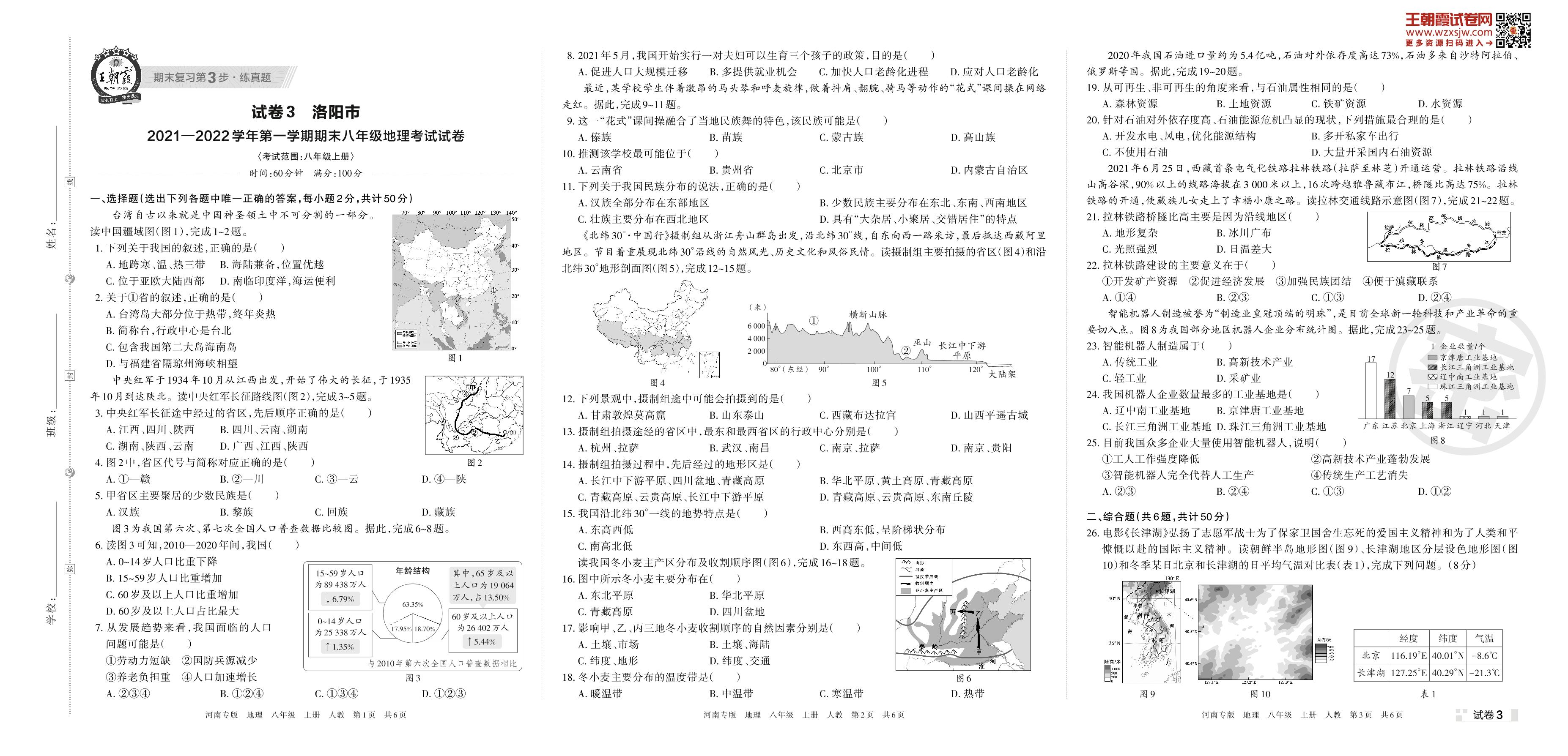 洛阳市2021—2022学年第一学期期末八年级地理考试试卷(人教版)【3】