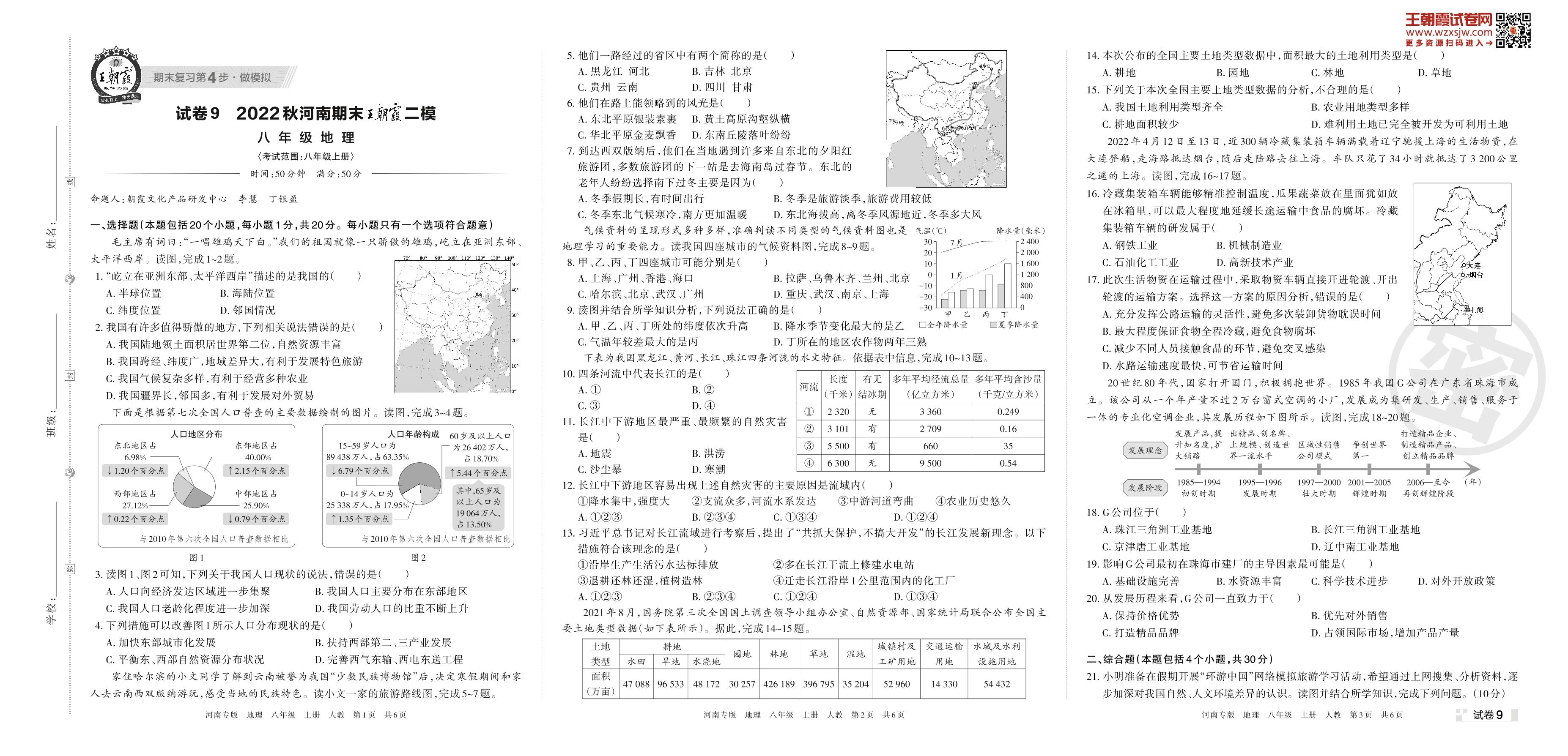 王朝霞期末模拟卷八年级上册地理(人教版)_R221114165504556【9】