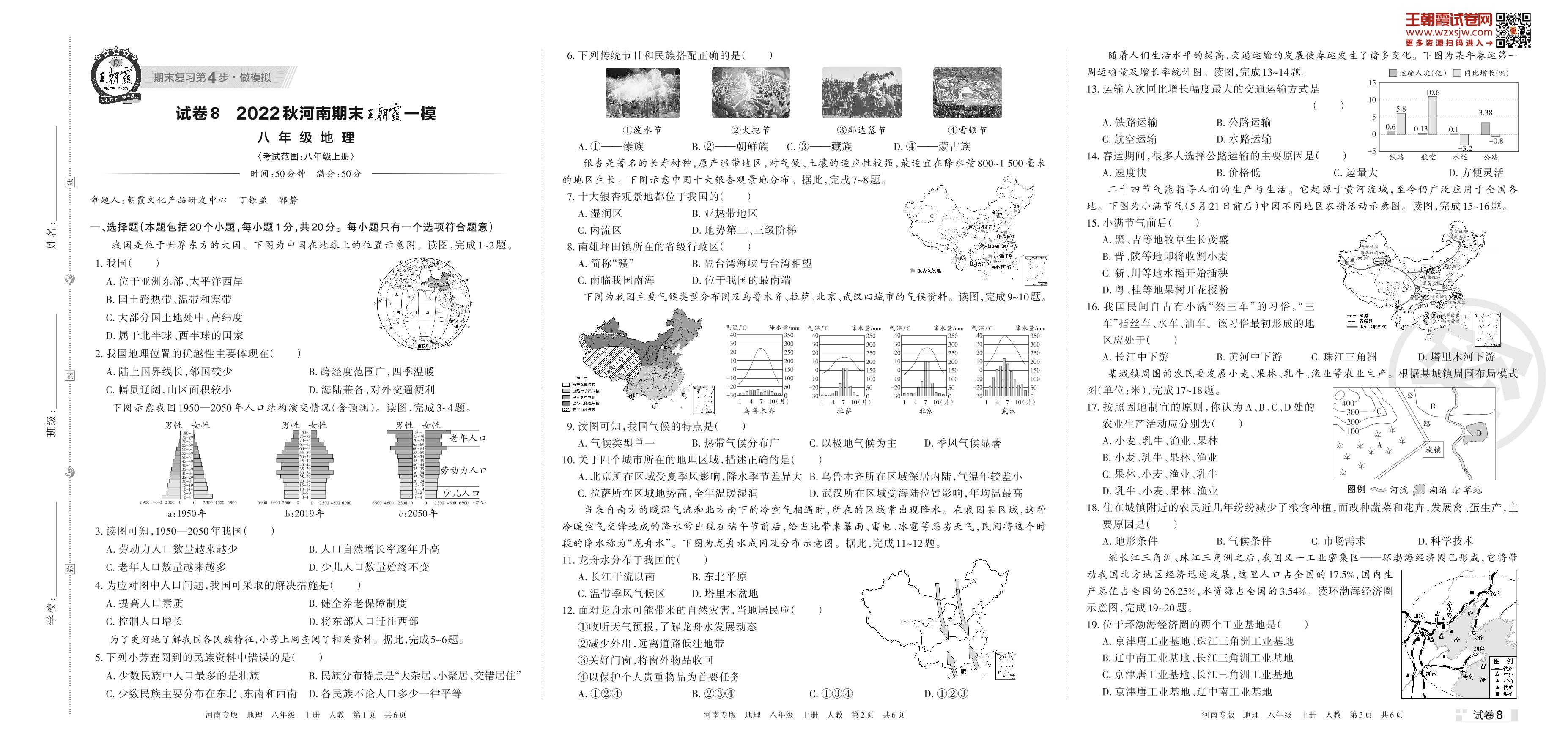 王朝霞期末模拟卷八年级上册地理(人教版)_R221114165504102【8】