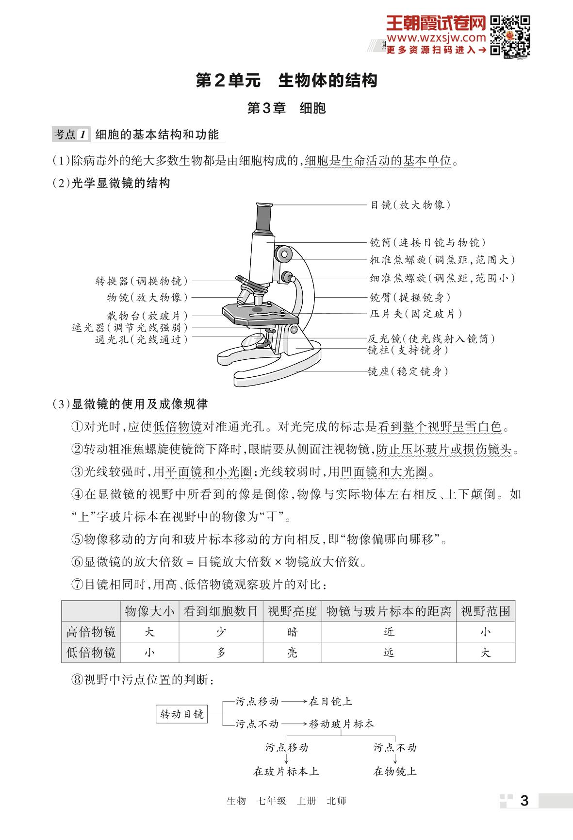 王朝霞期末过课本——第2单元 生物体的结果七年级上册生物(北师版)