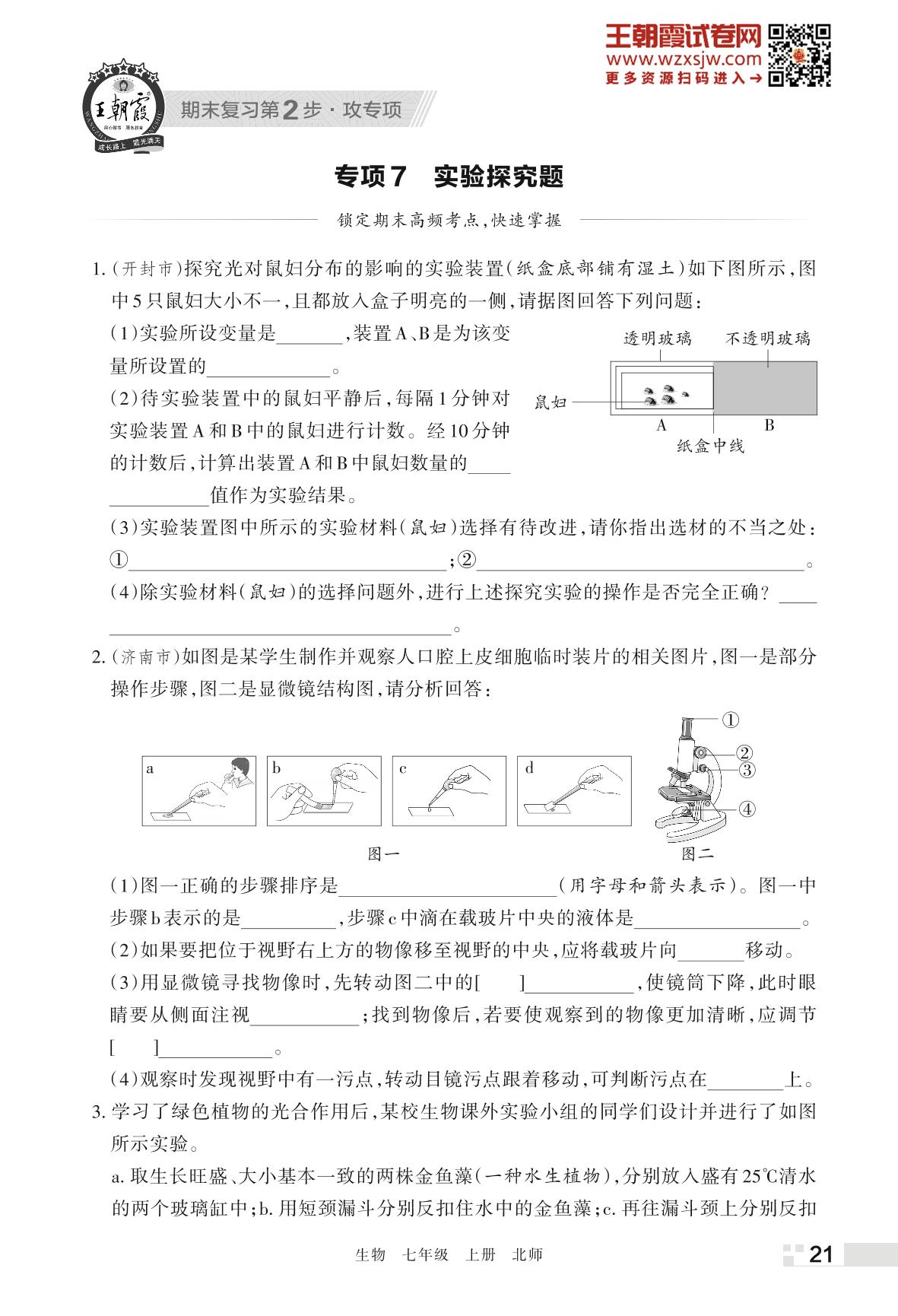 王朝霞期末专项卷——实验探究题七年级上册生物(北师版)【7】