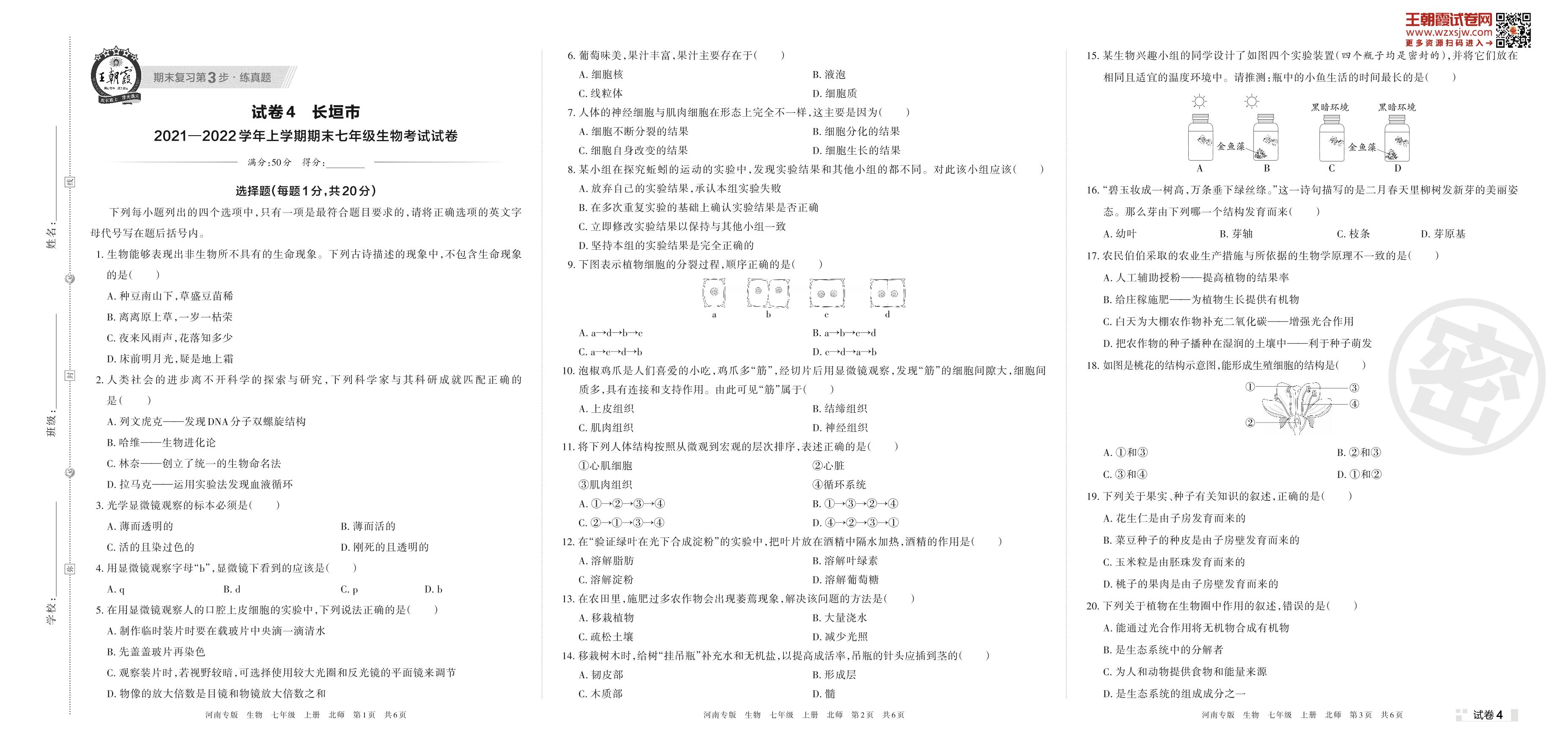 七年级生物北师版上册期末卷