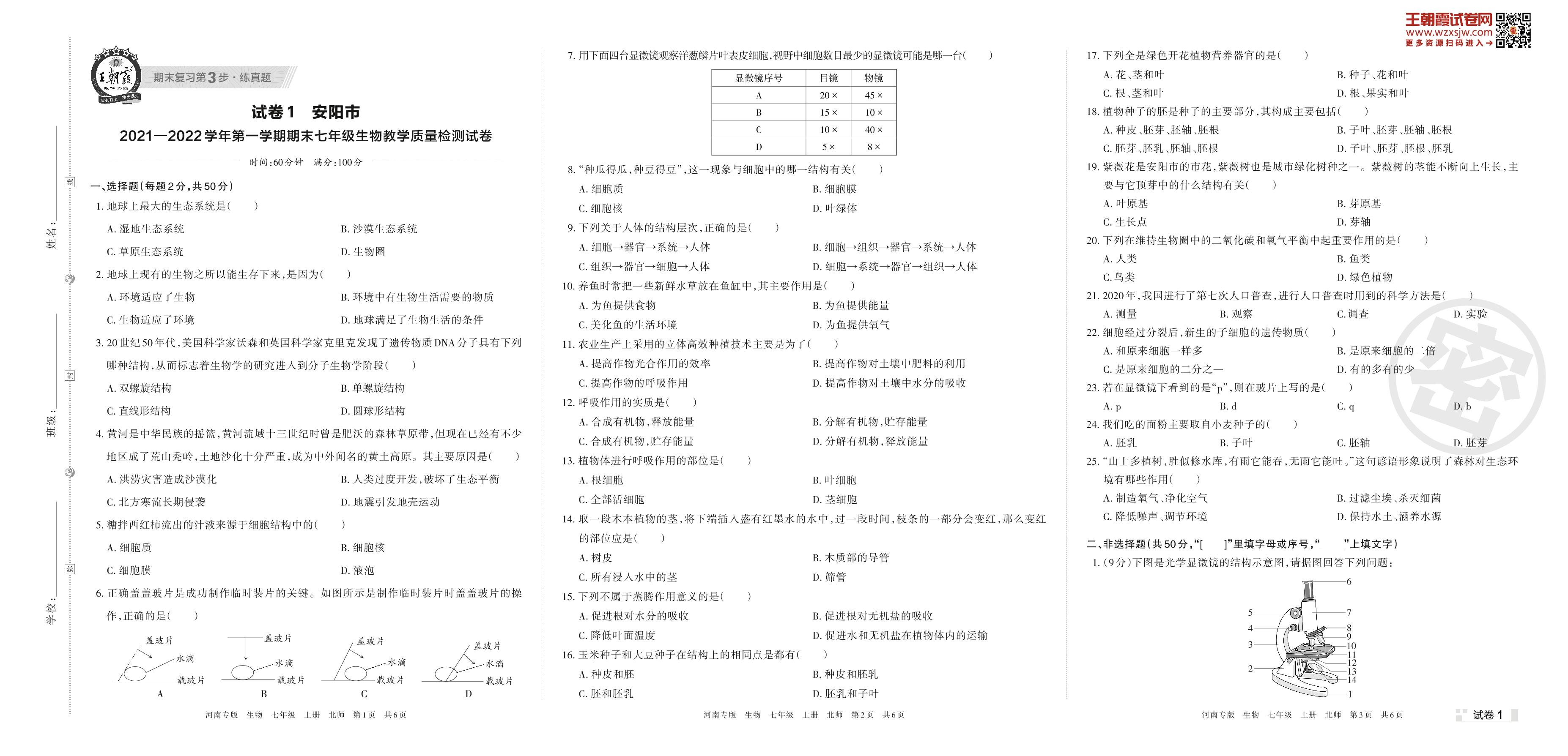 安阳市2021—2022学年第一学期期末七年级生物教学质量检测试卷(北师版)【1】