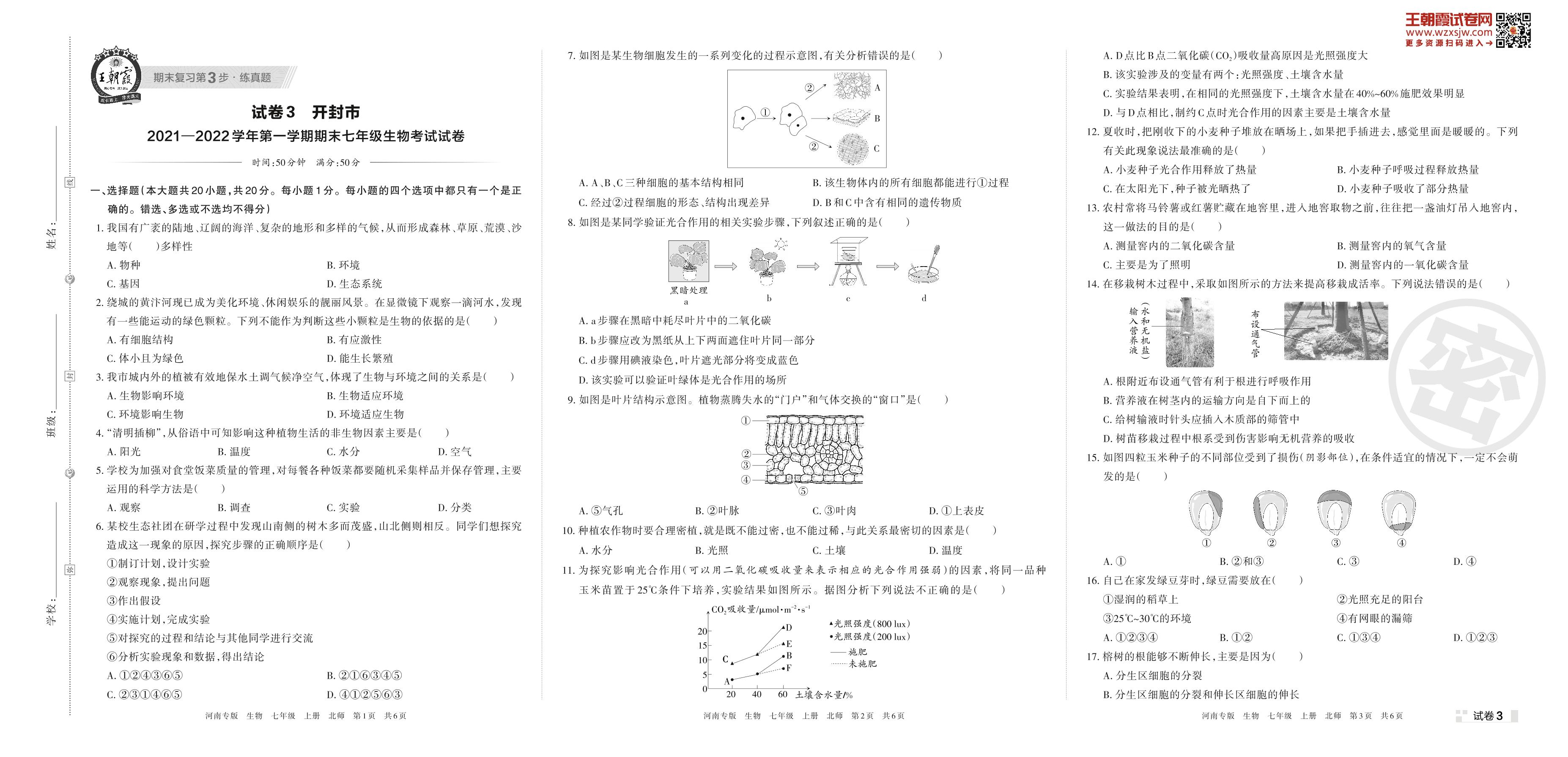 开封市2021—2022学年第一学期期末七年级生物考试试卷(北师版)【3】