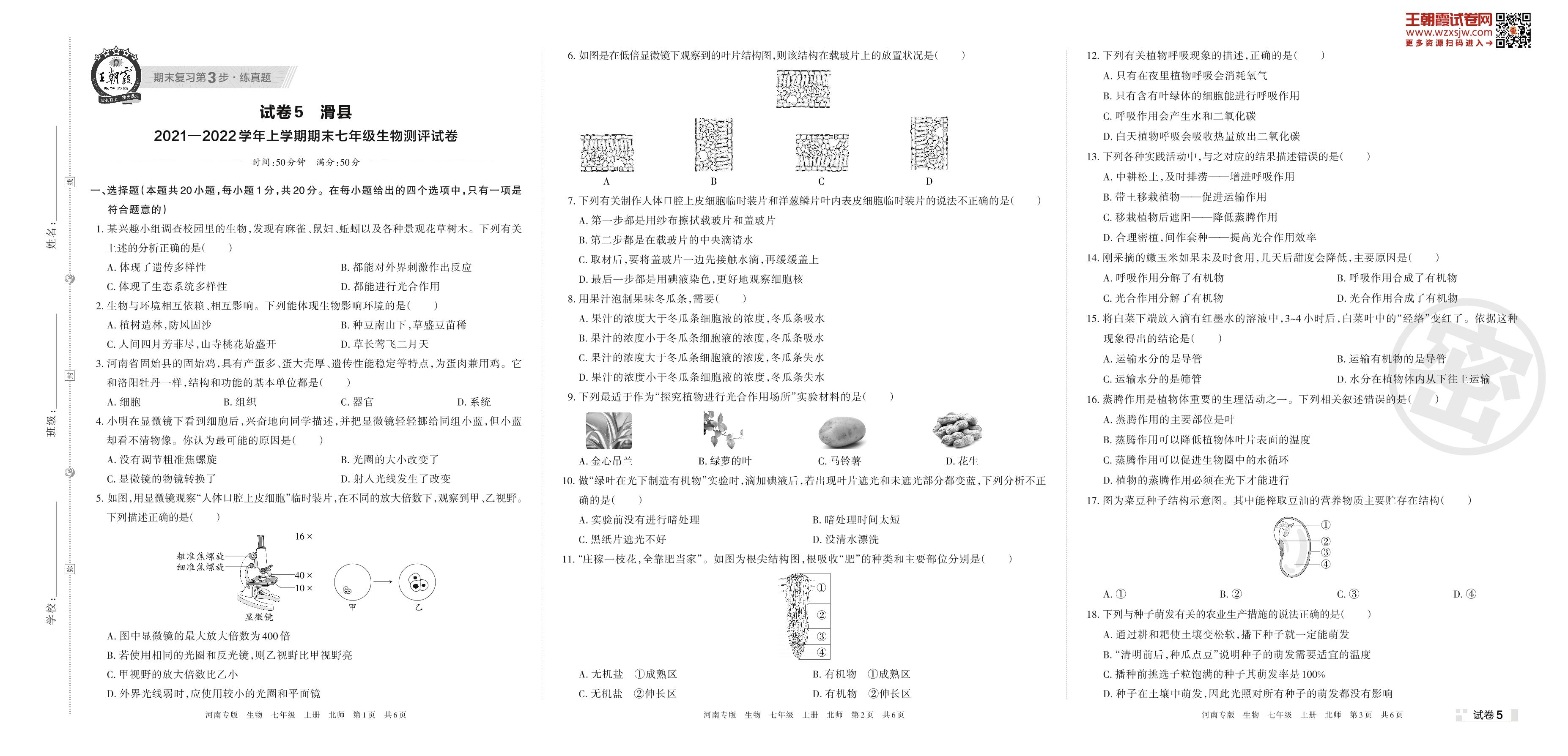 滑县2021—2022学年上学期期末七年级生物测评试卷(北师版)【5】