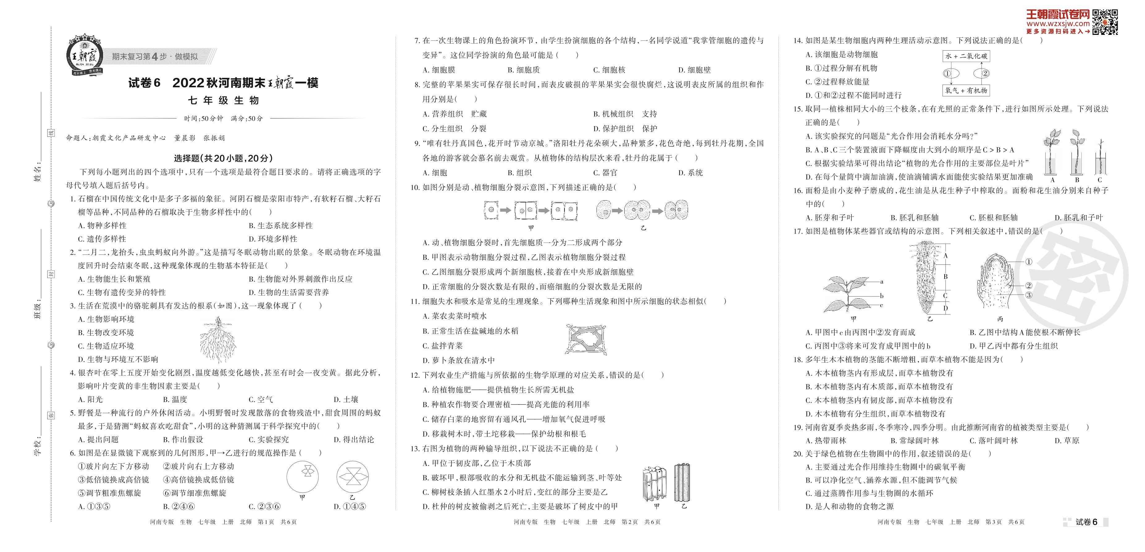 王朝霞期末模拟卷七年级上册生物(北师版)_R221114172222257【6】
