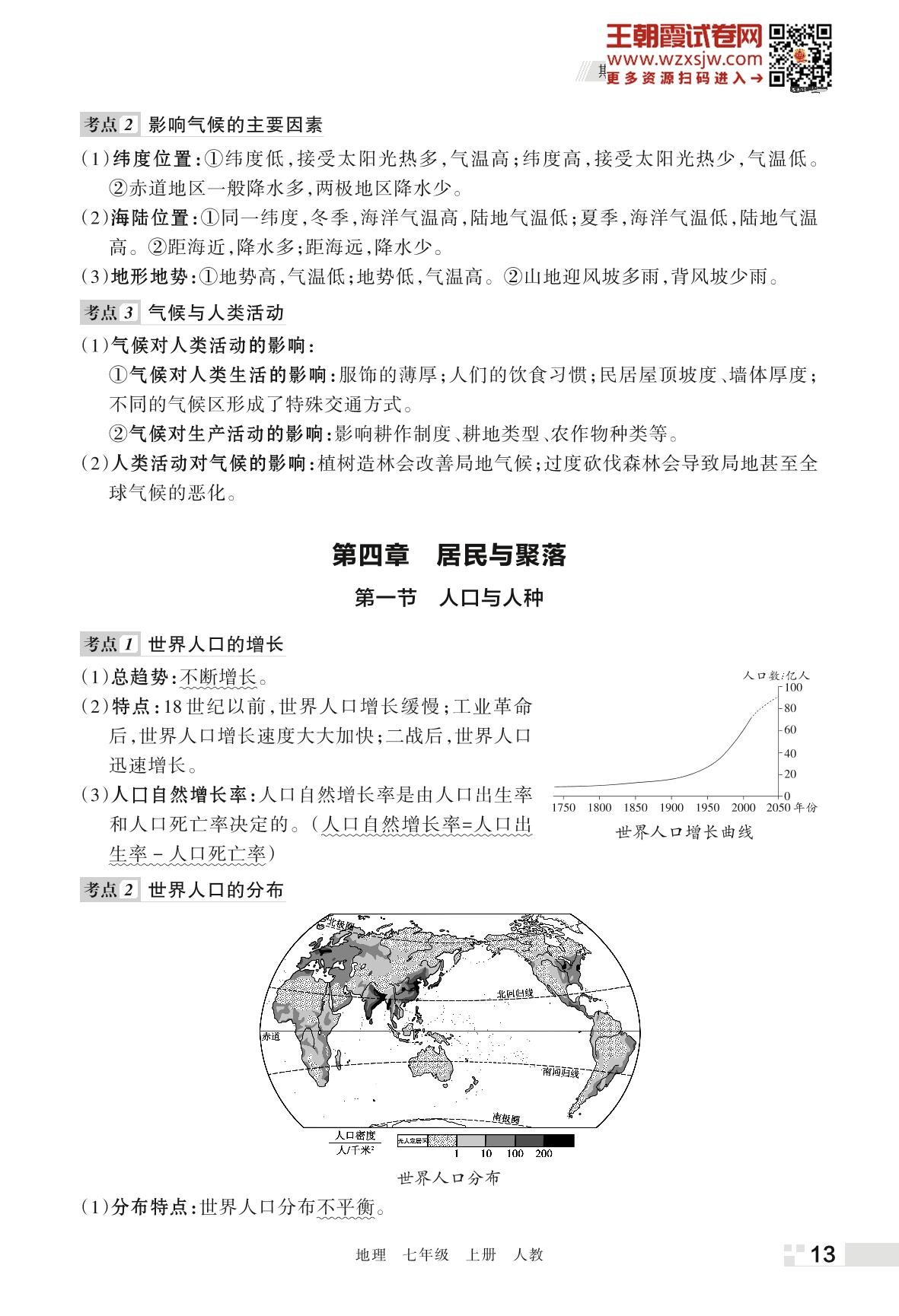 王朝霞期末过课本——第四章 居民与聚落七年级上册地理(人教版)