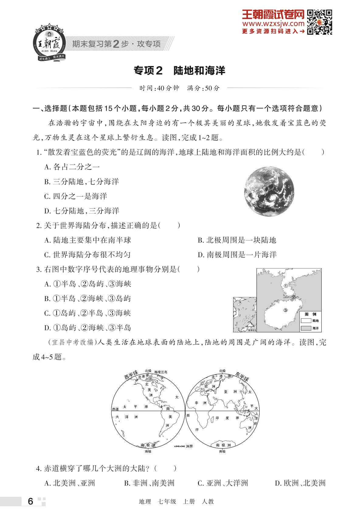 王朝霞期末专项卷——陆地和海洋七年级上册地理(人教版)_R221114173519311【2】
