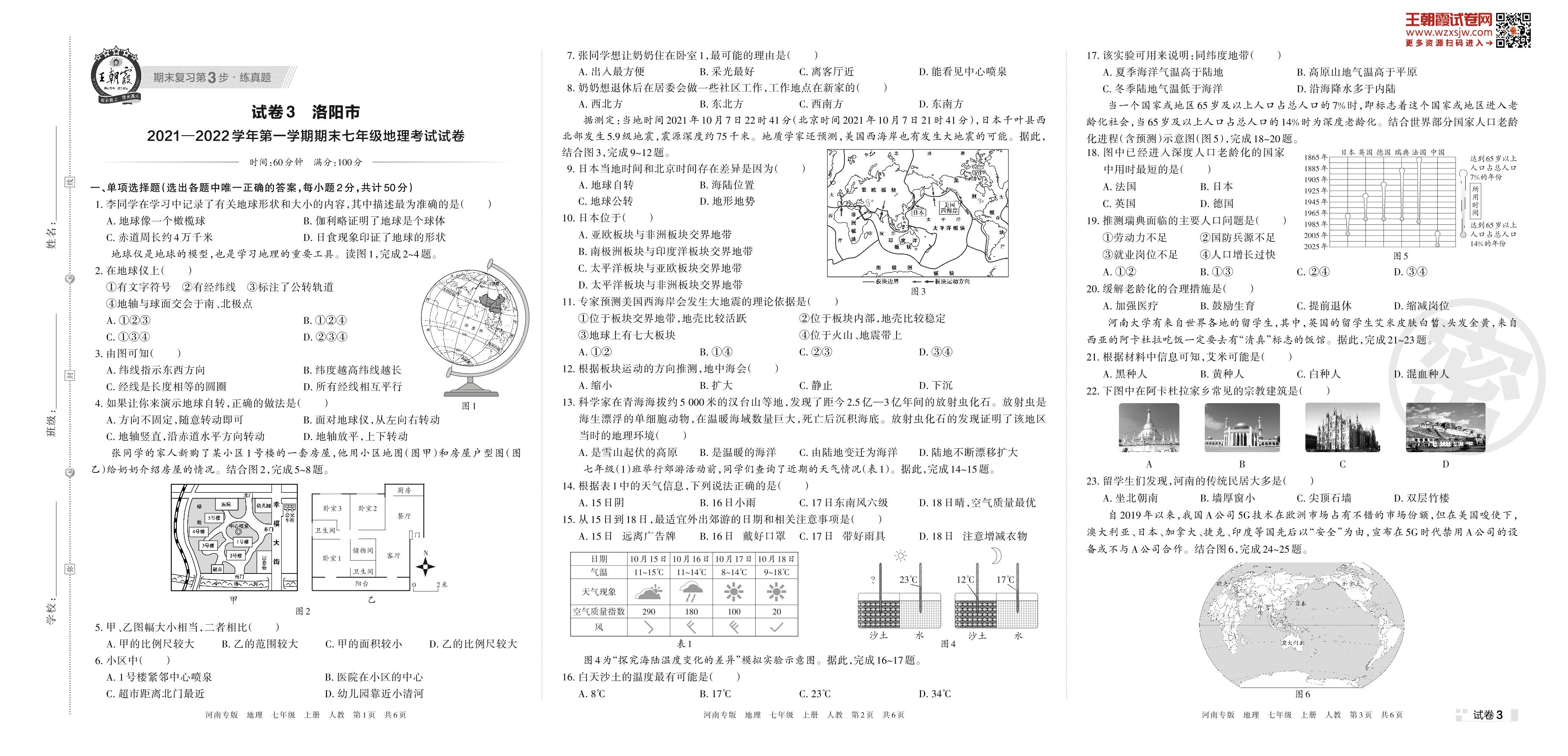 洛阳市2021—2022学年第一学期期末七年级地理考试试卷(人教版)【3】