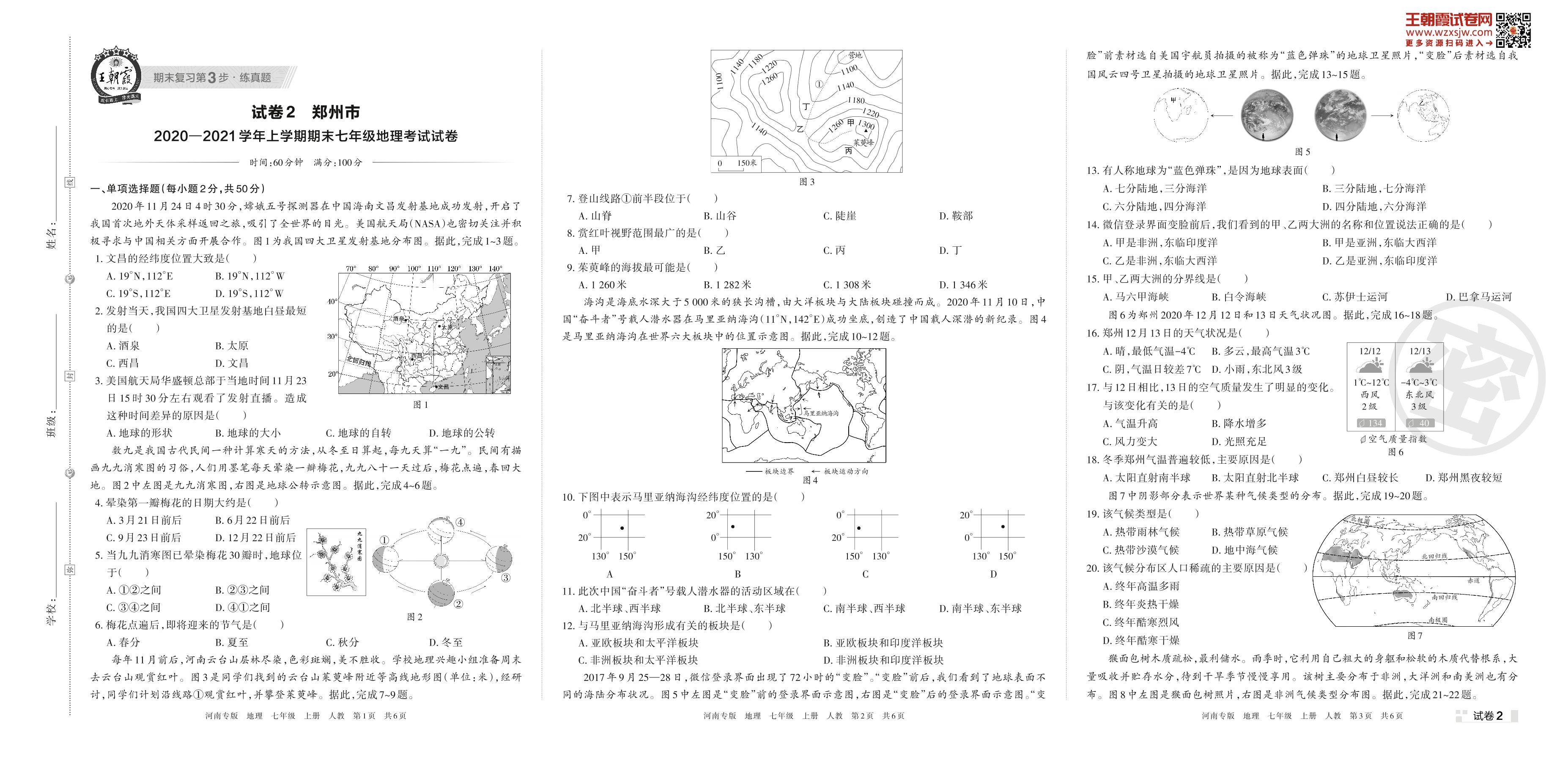 七年级地理人教版上册期末卷