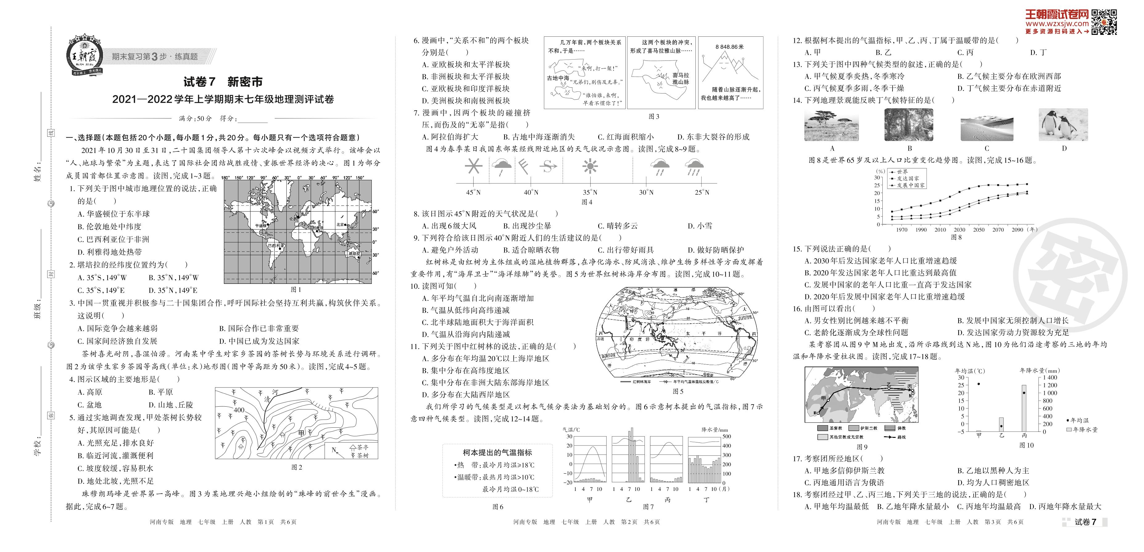 新密市2021—2022学年上学期期末七年级地理测评试卷 (人教版)【7】