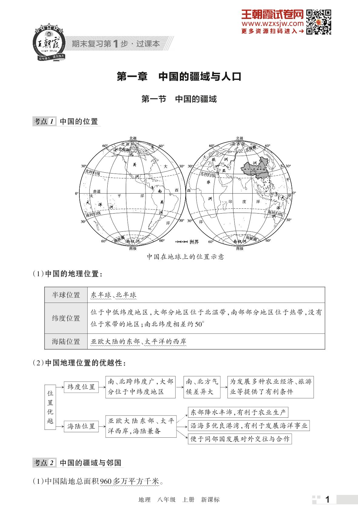 王朝霞期末过课本——第一章 中国的疆域和人口八年级上册地理(新课标版)