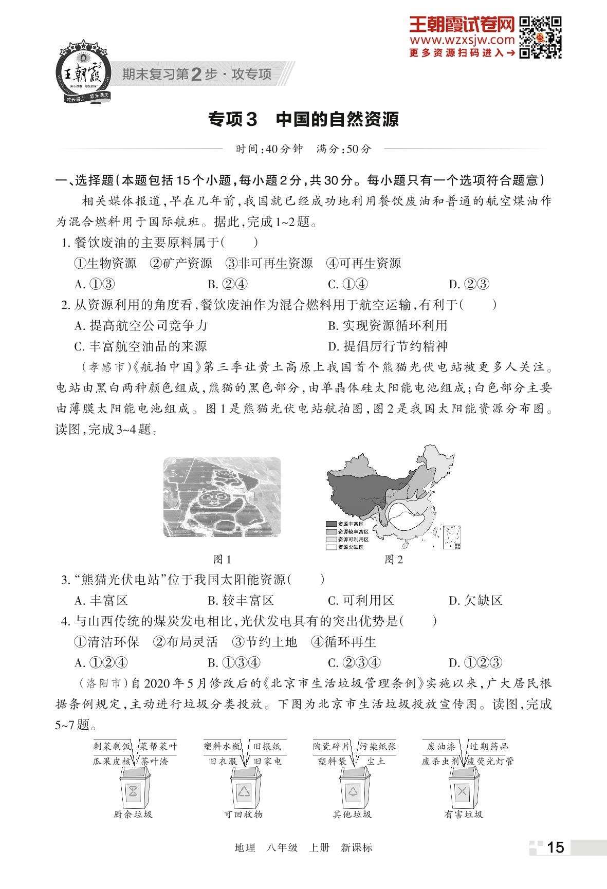 王朝霞期末专项卷——中国的自然资源八年级上册地理(新课标版)【3】