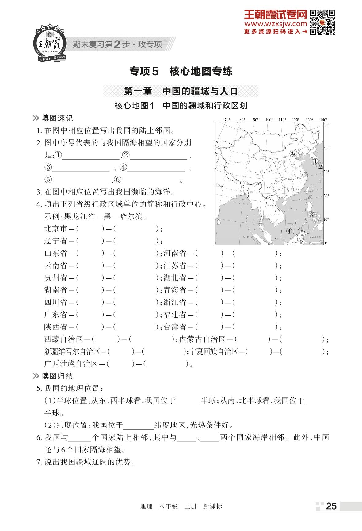 王朝霞期末专项卷——核心地图专练八年级上册地理(新课标版)【5】