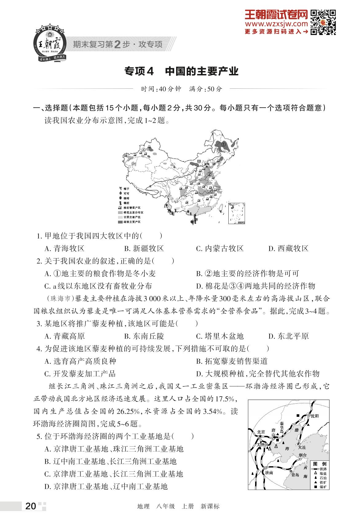 王朝霞期末专项卷——中国的主要产业八年级上册地理(新课标版)【4】