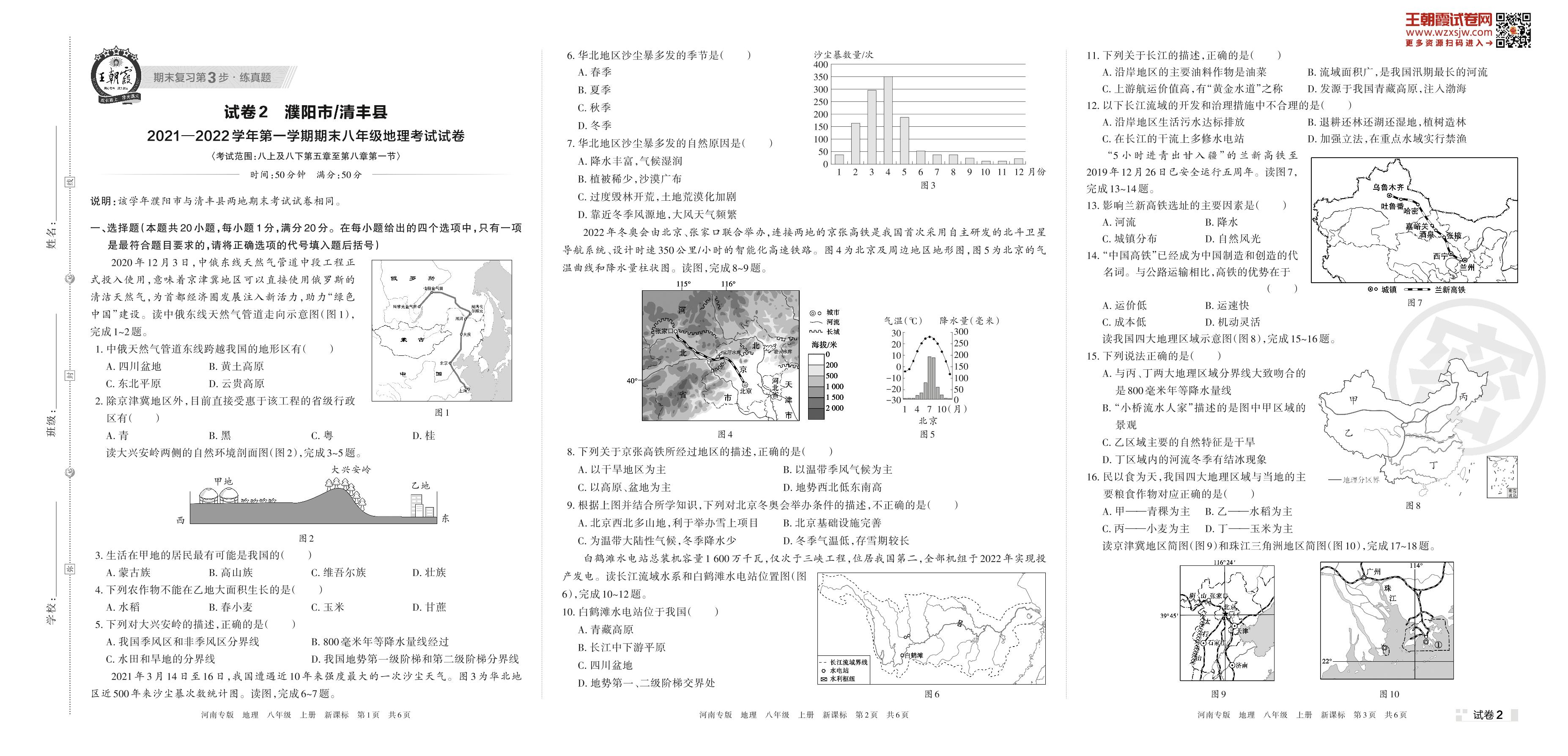 濮阳市、清丰县2021—2022学年第一学期期末八年级地理考试试卷(新课标版)【2】