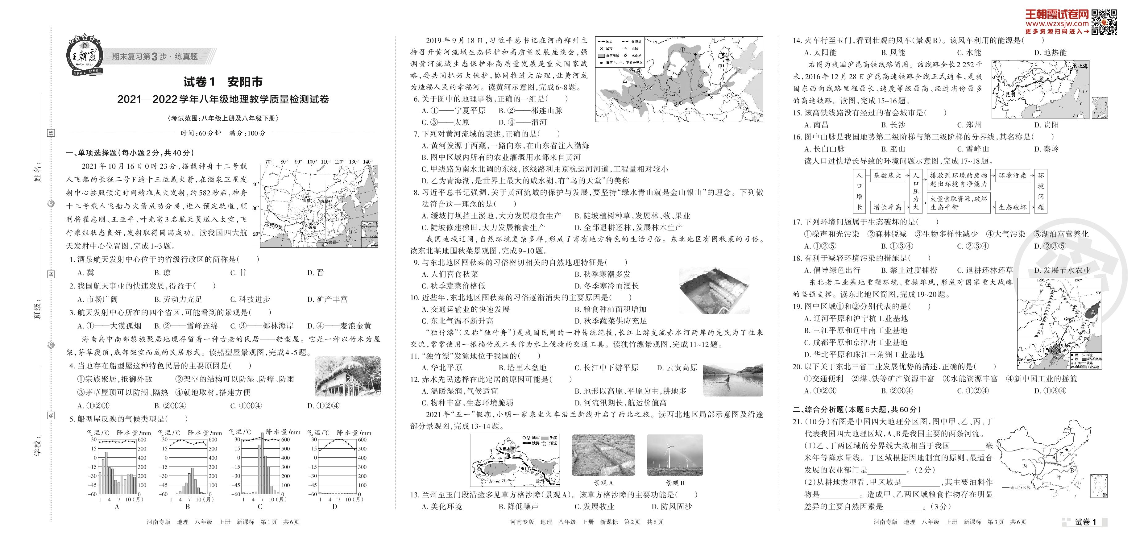 安阳市2021—2022学年八年级地理教学质量检测试卷(新课标版)【1】