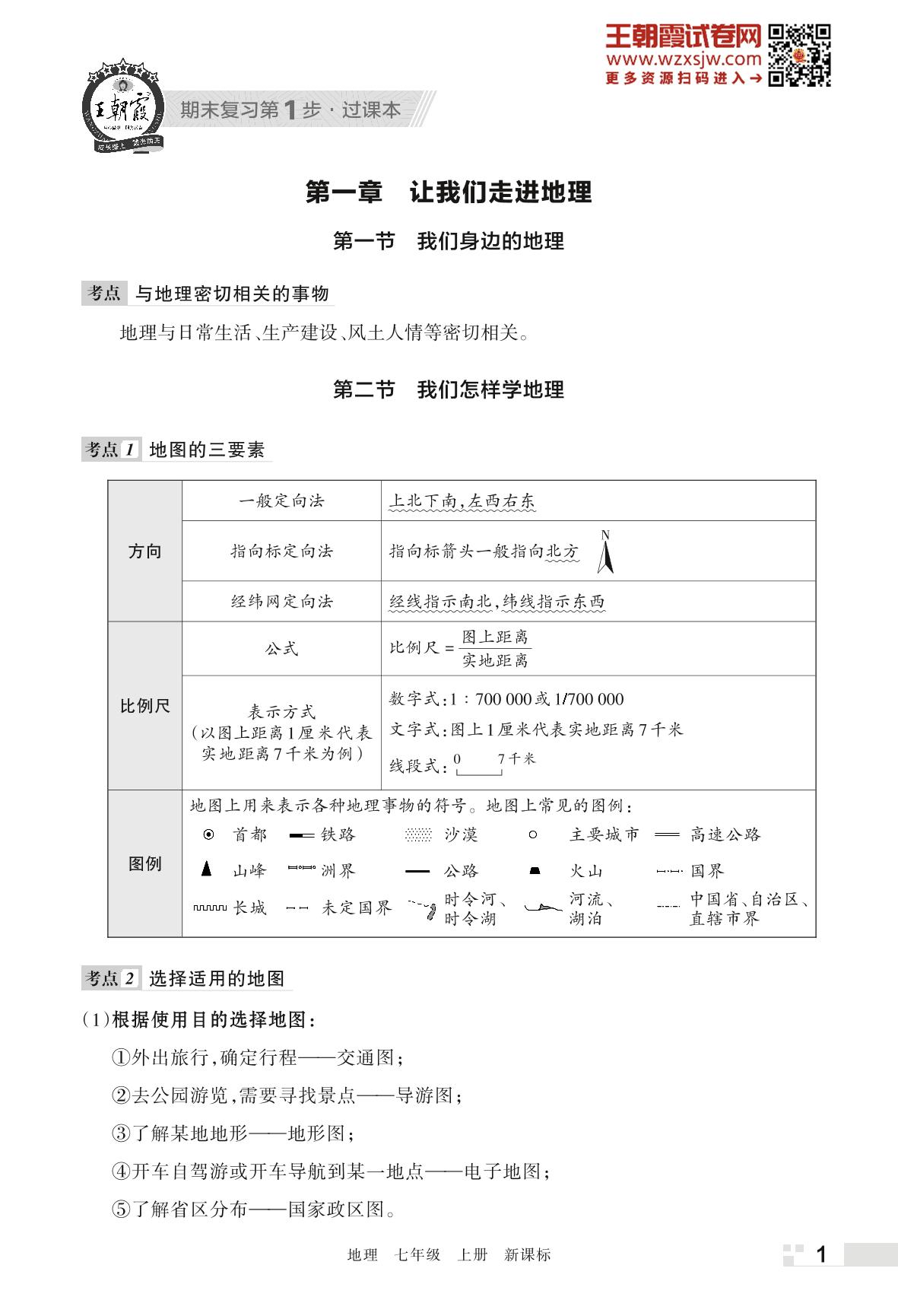 王朝霞期末过课本——第一章 让我们走进地理七年级上册地理(新课标版)