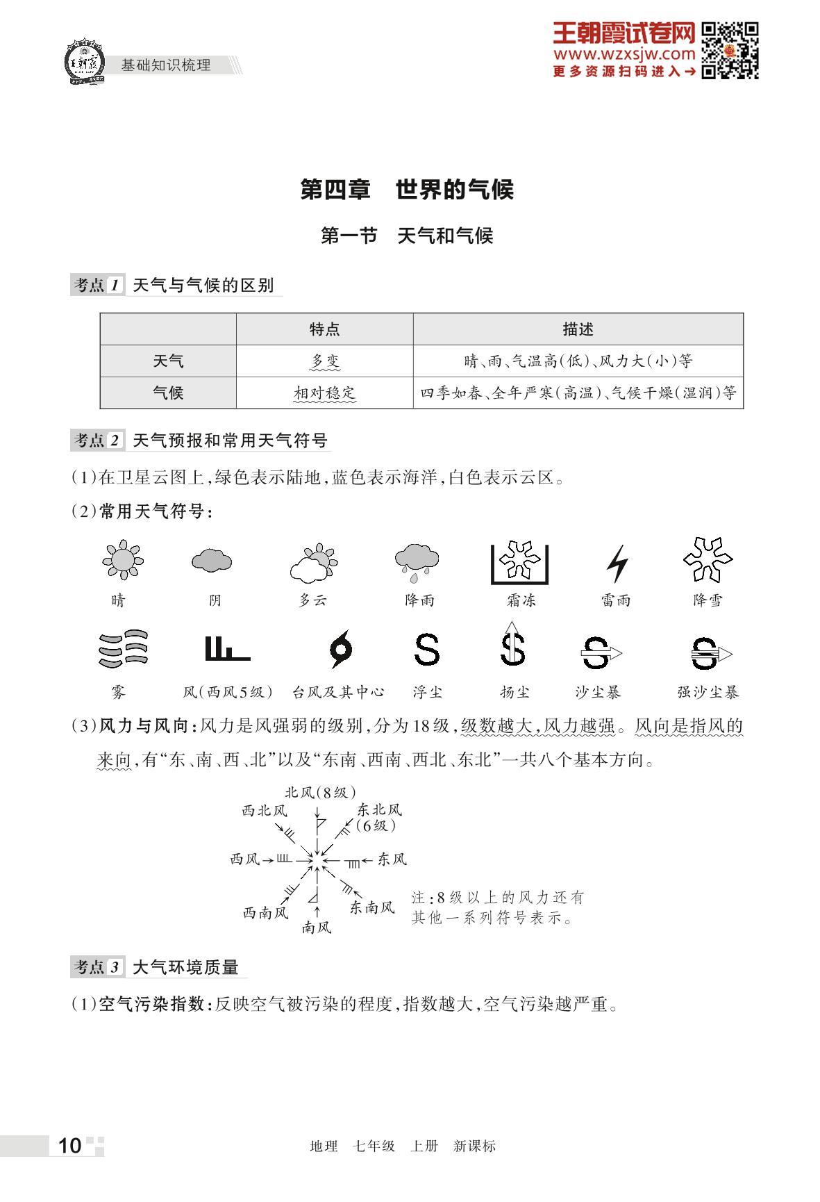 王朝霞期末过课本——第四章 世界的气候七年级上册地理(新课标版)