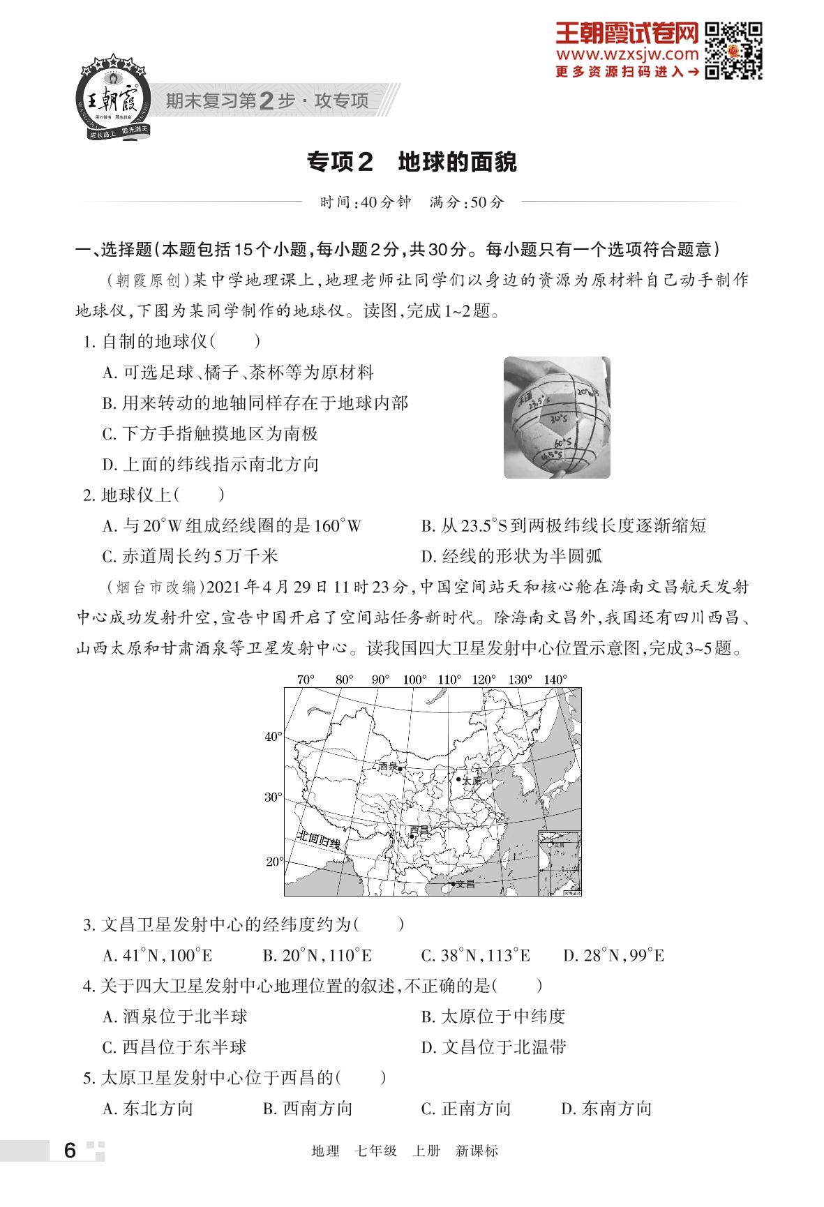 王朝霞期末专项卷——地球的面貌七年级上册地理(新课标版)_R221114175451806【2】