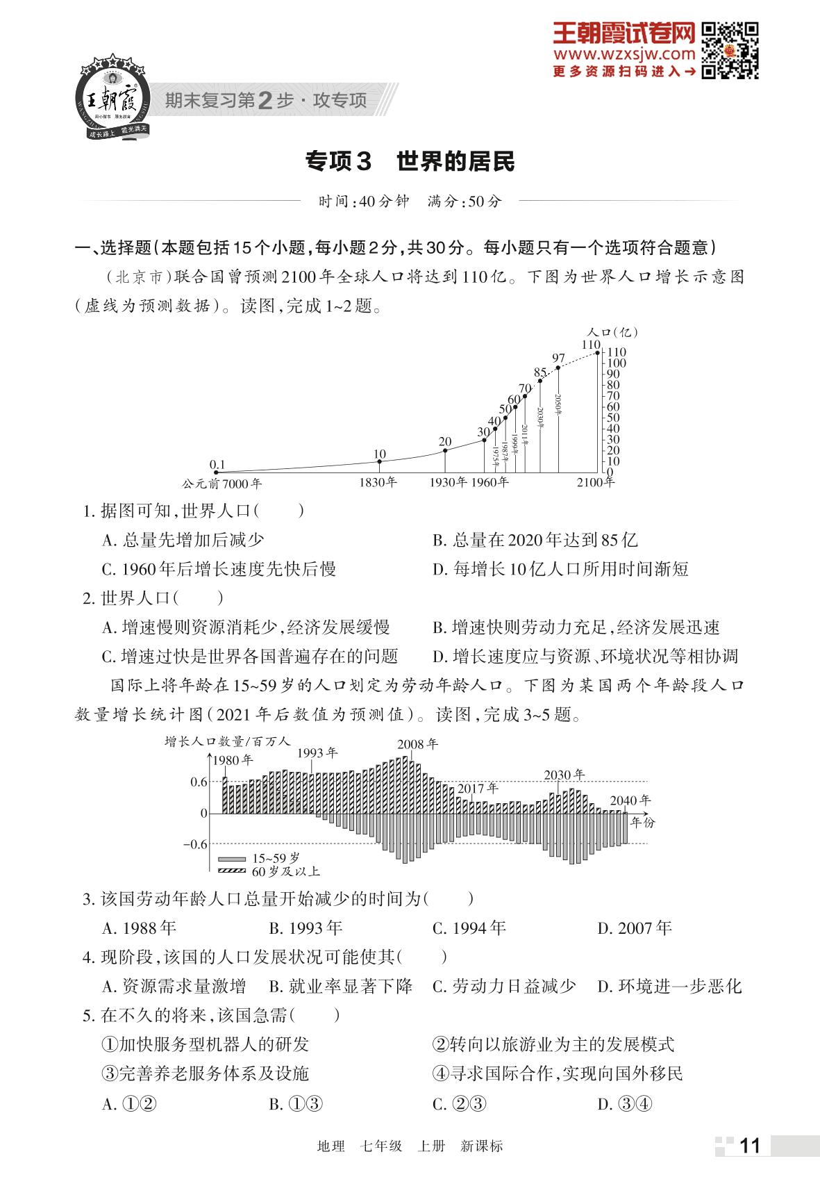 王朝霞期末专项卷——世界的居民七年级上册地理(新课标版)_R221114175451425【3】