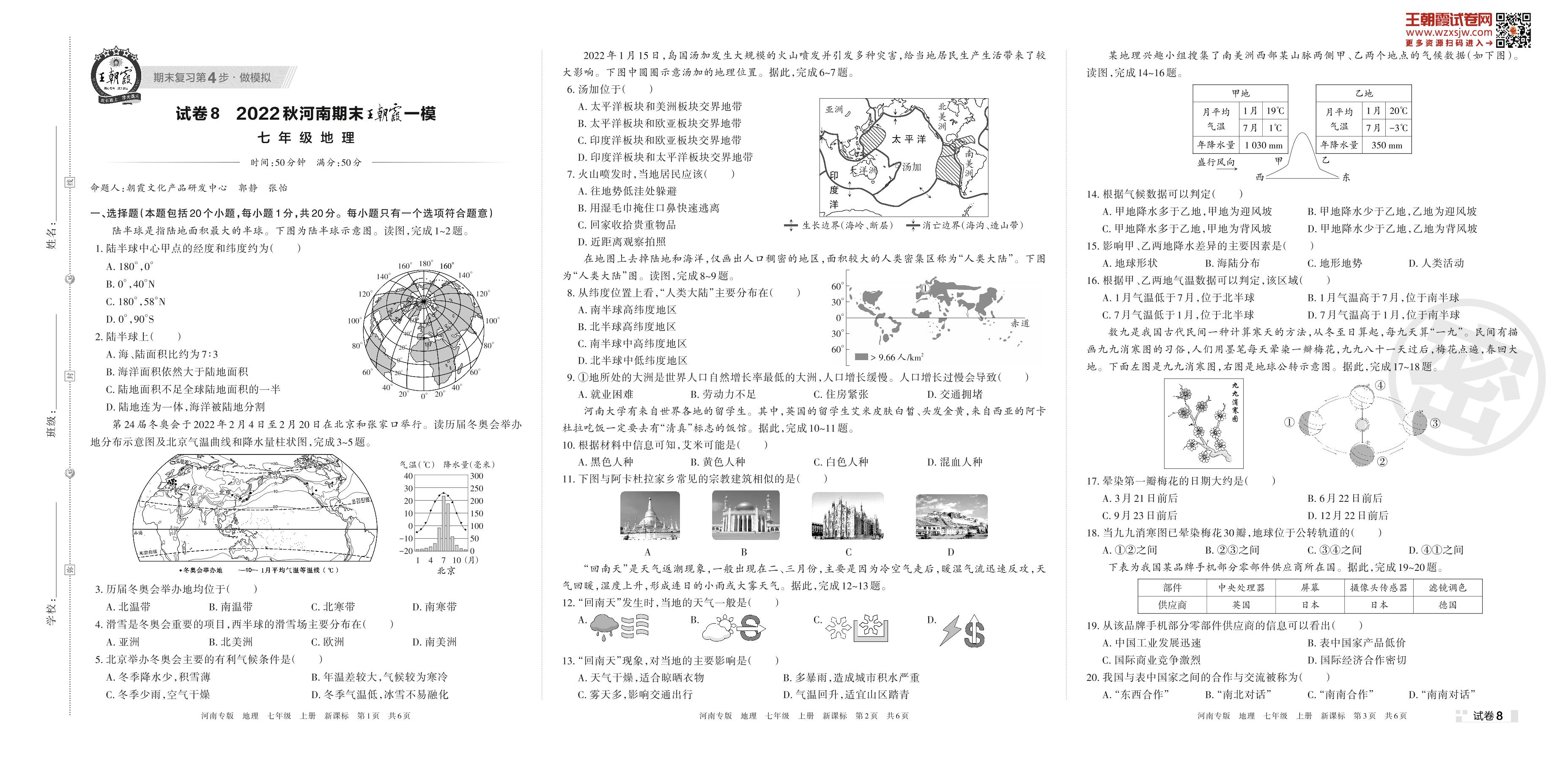 王朝霞期末模拟卷七年级上册地理(新课标版)【8】