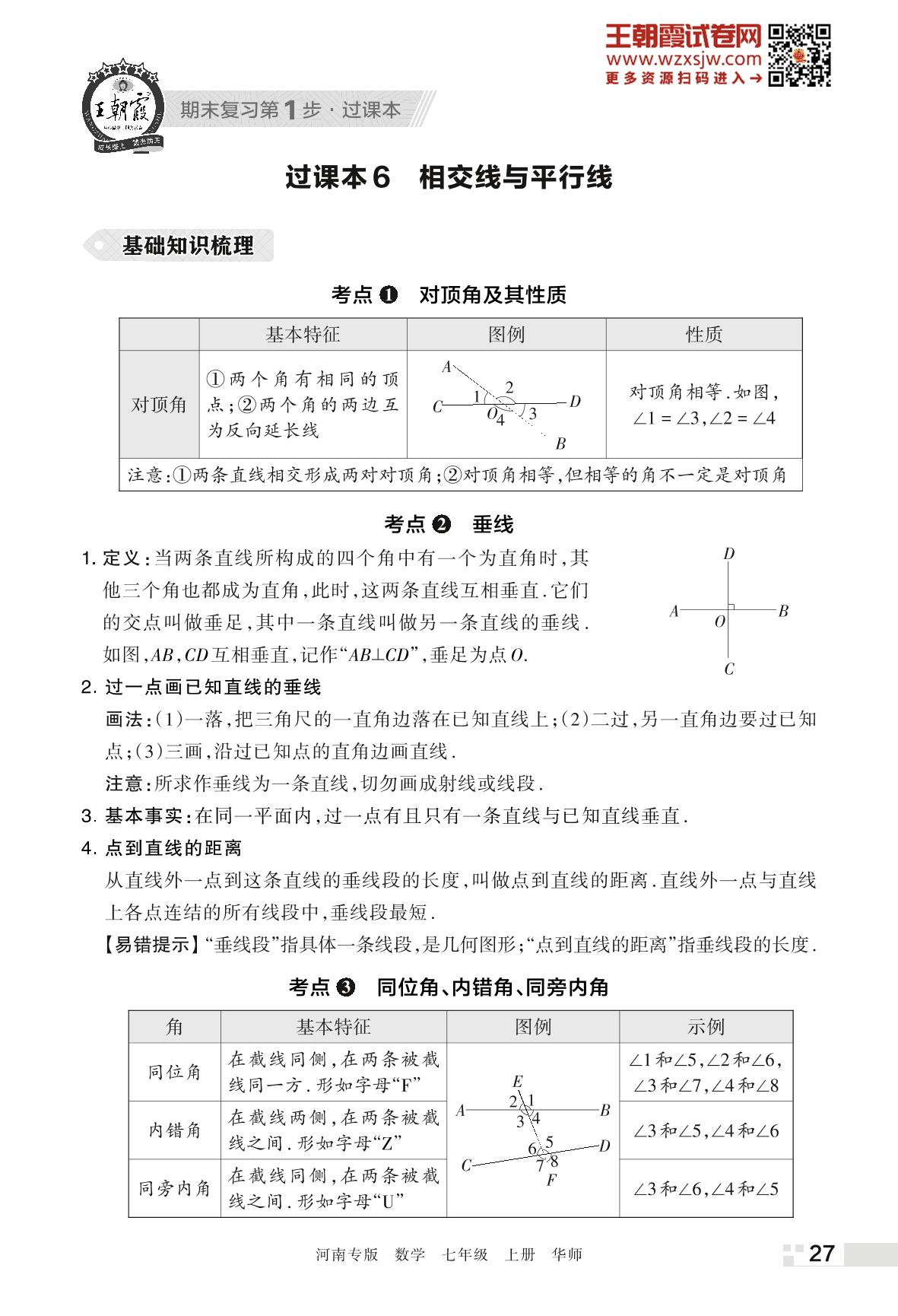 王朝霞期末过课本——6 相交线与平行线七年级上册数学(华师版)