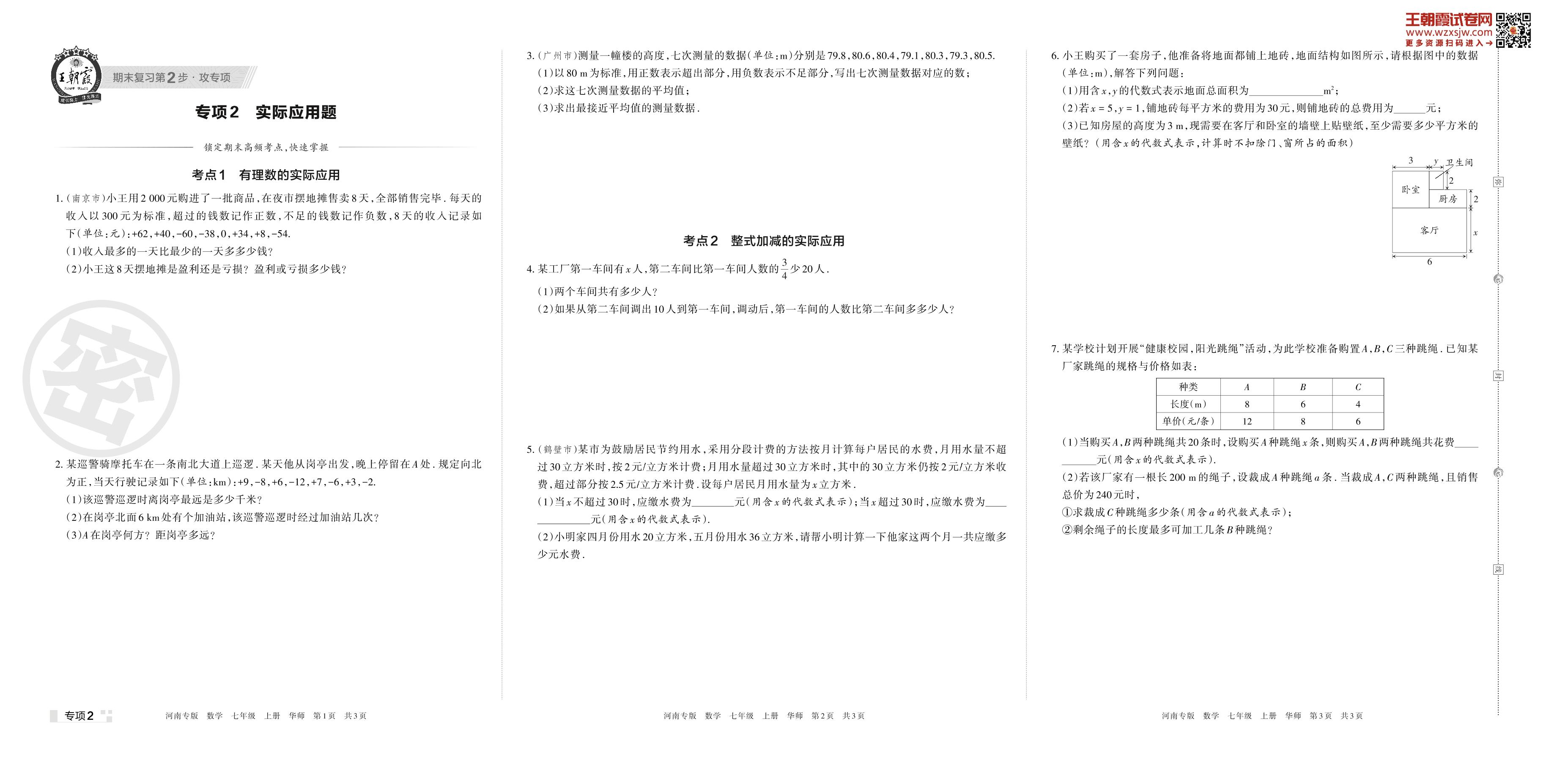 王朝霞期末专项卷——实际应用题七年级上册数学(华师版)【2】