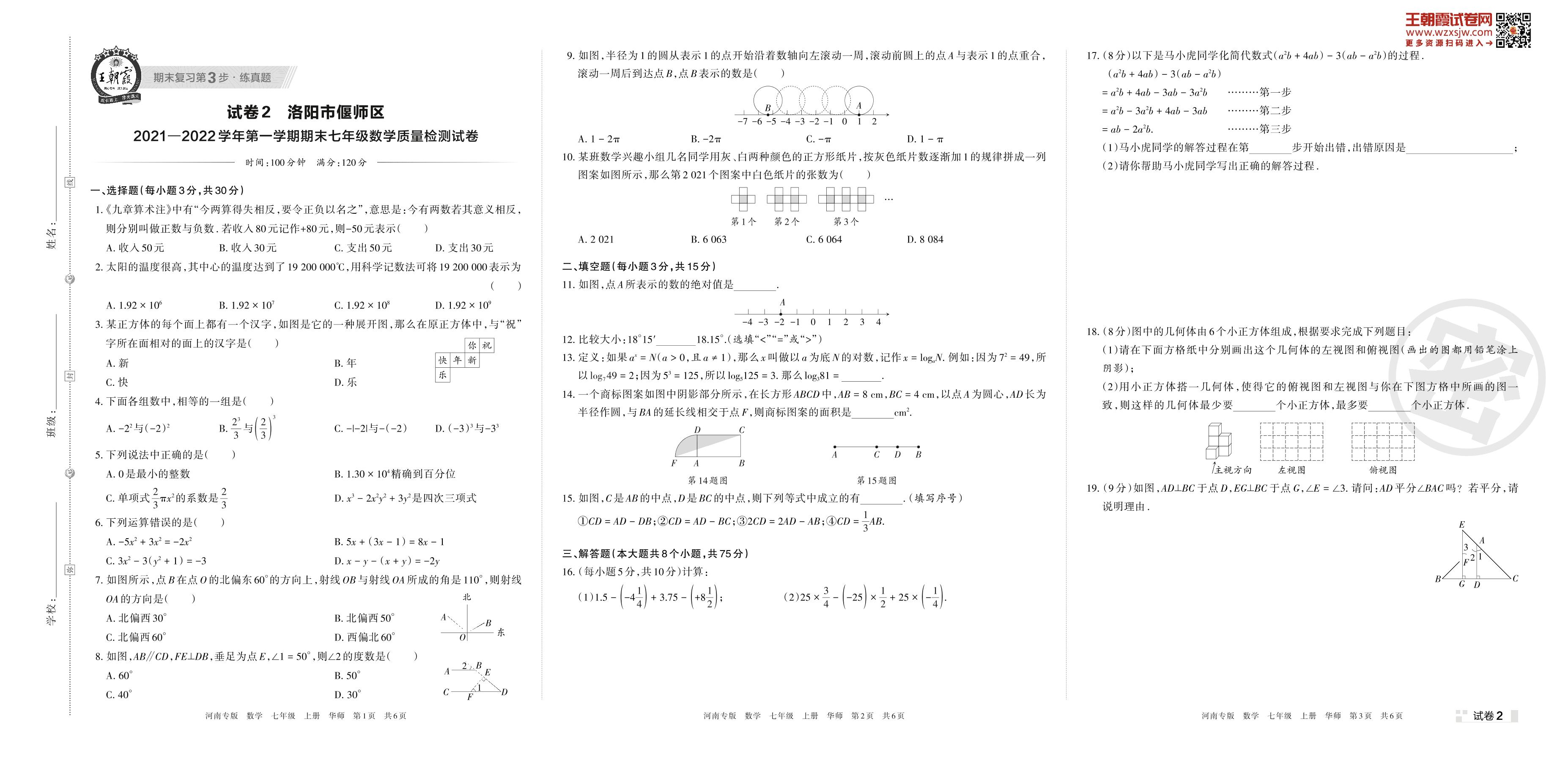 南阳市2021年秋期期末七年级数学质量评估检测试题卷(华师版)【2】