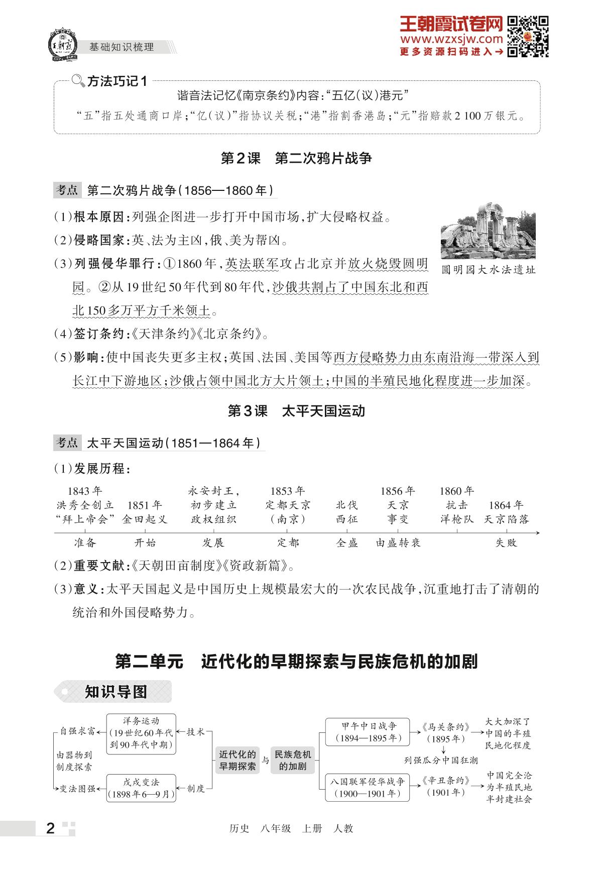 王朝霞期末过课本——第二单元 近代化的早期探索与民族危机的加剧八年级上册历史(人教版)