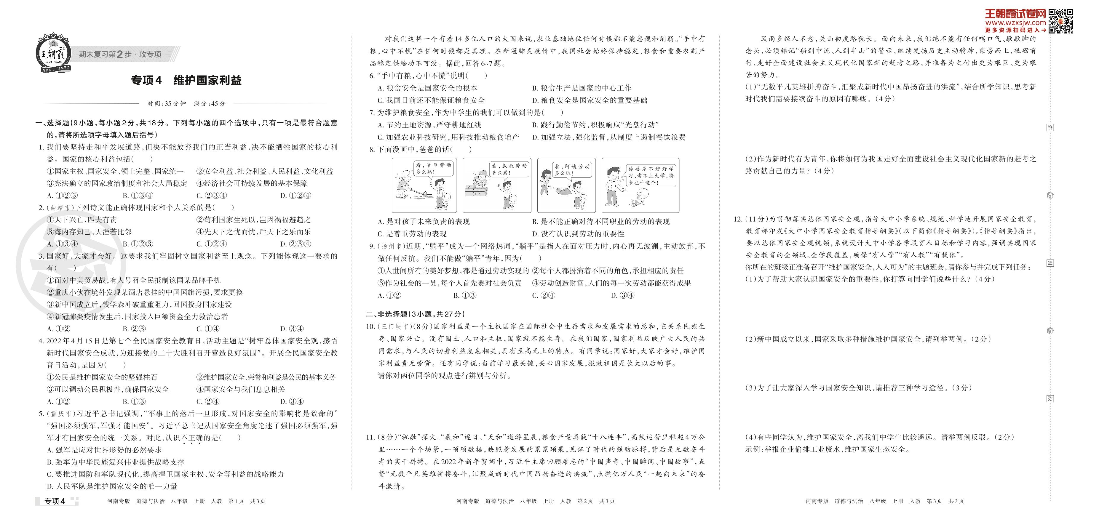 王朝霞期末专项卷——维护国家利益八年级上册道德与法治(人教版)_R221115143043144【4】