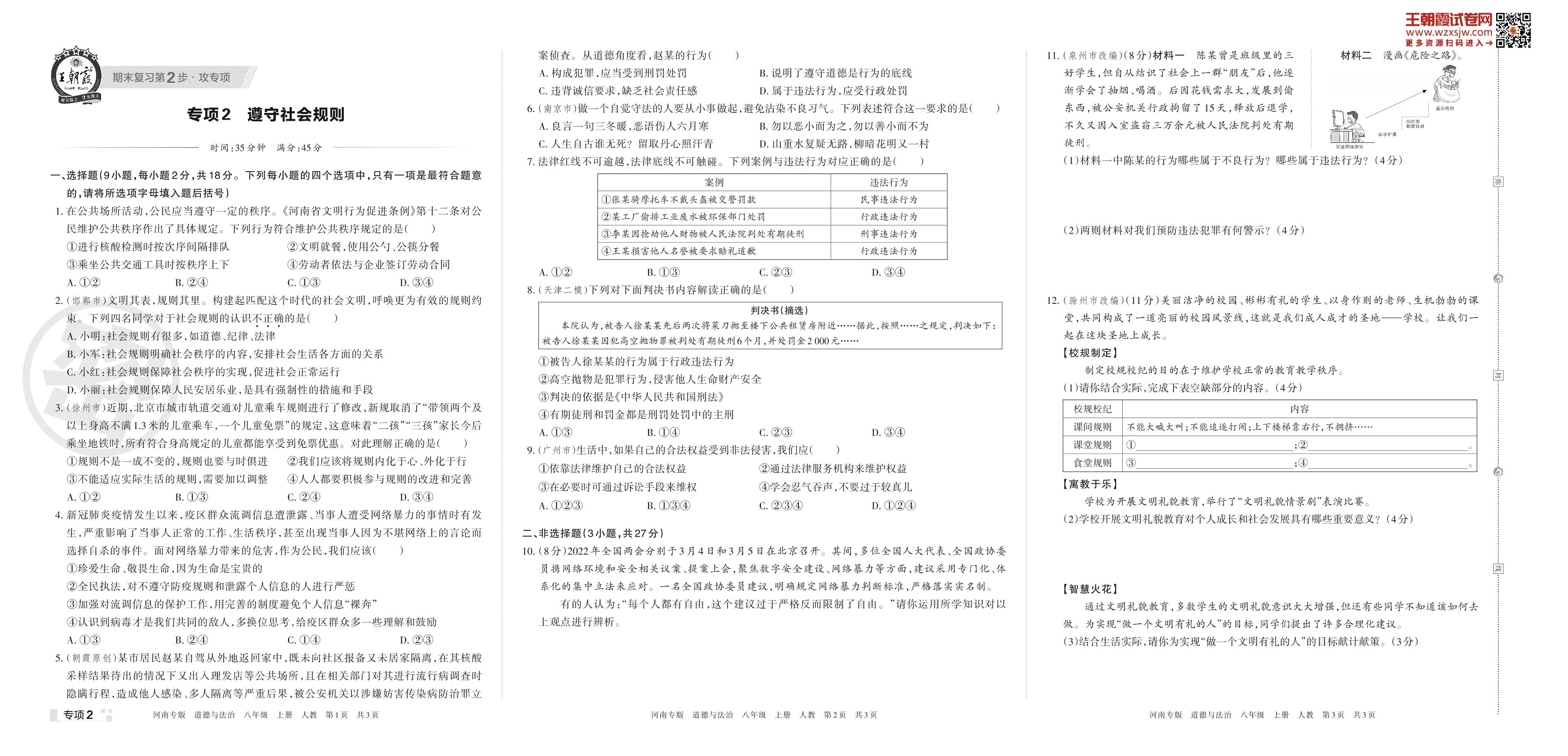 王朝霞期末专项卷——遵守社会规则八年级上册道德与法治(人教版)_R221115143043051【2】