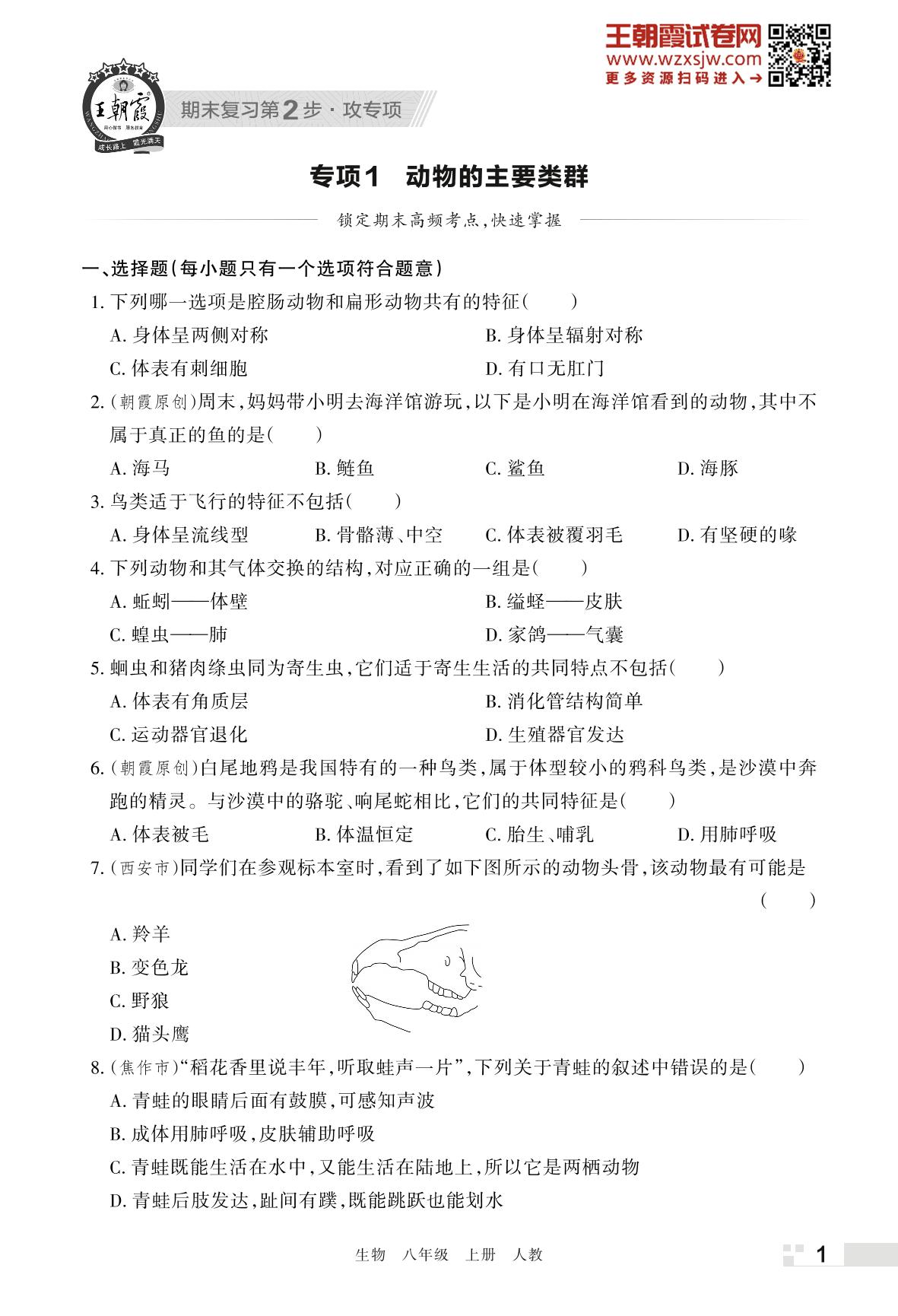 王朝霞期末专项卷——动物的主要类群八年级上册生物(人教版)【1】