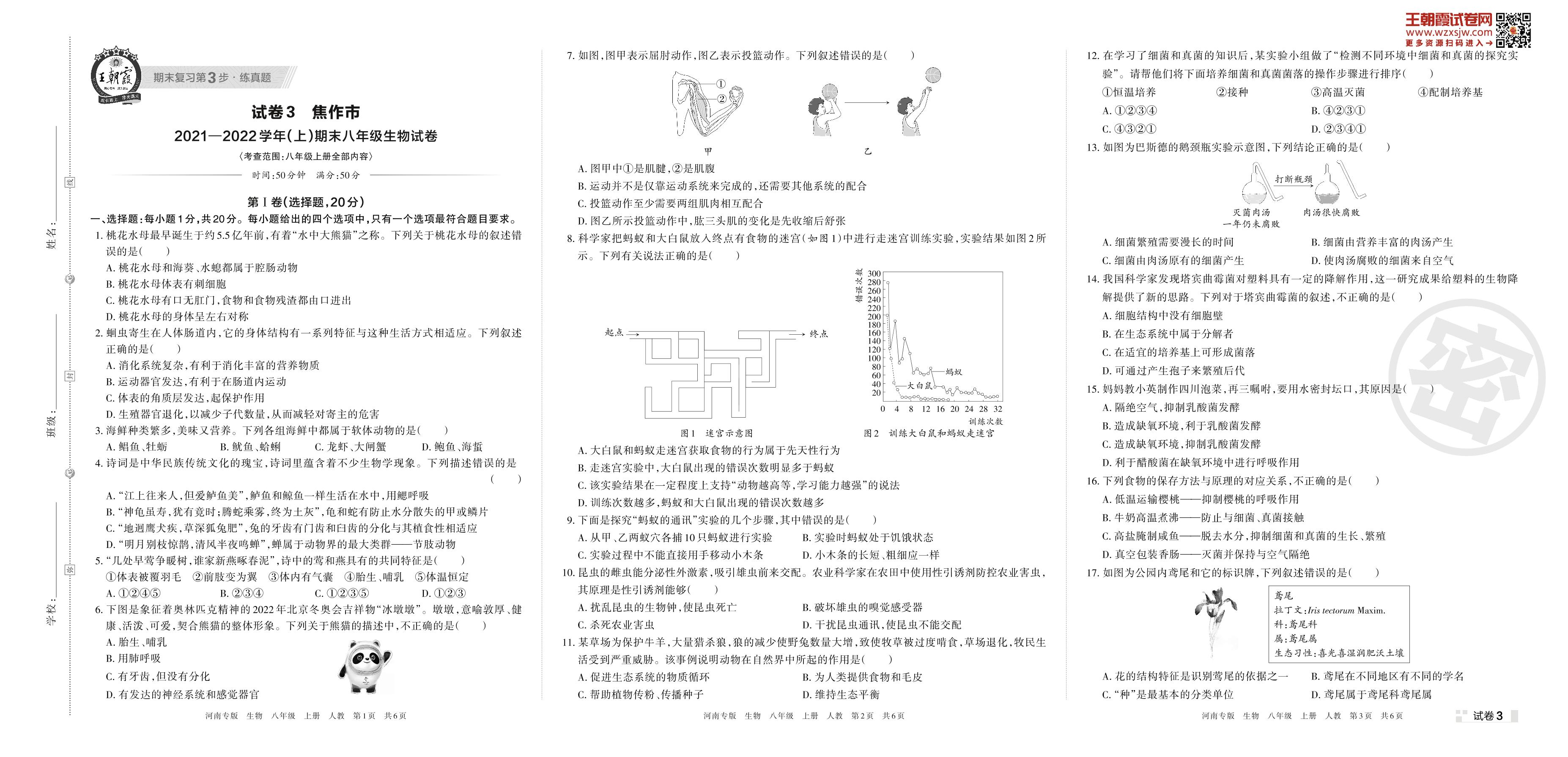 焦作市2021—2022学年(上)期末八年级生物试卷(人教版)【3】