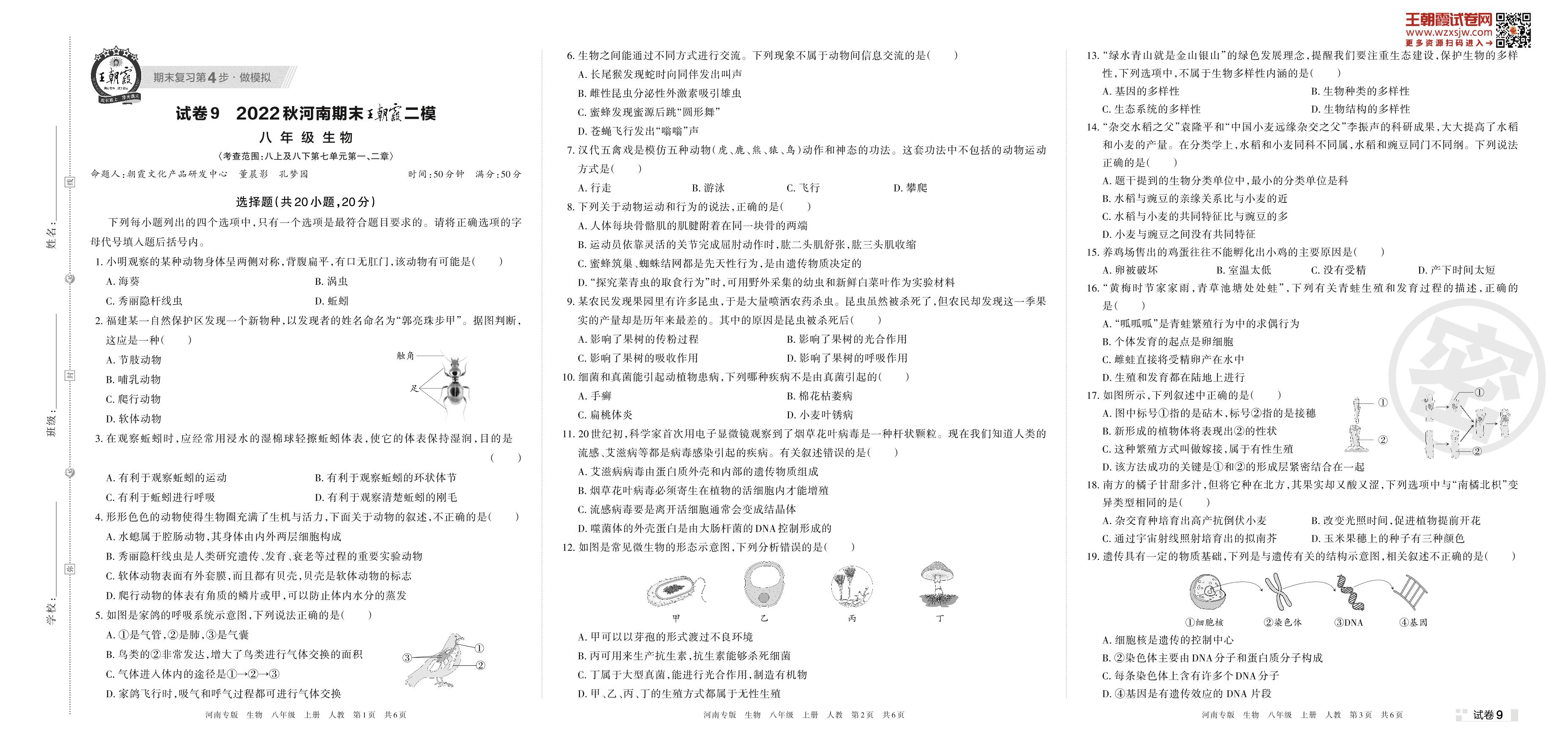 王朝霞期末模拟卷八年级上册生物(人教版)_R221115150158222【9】