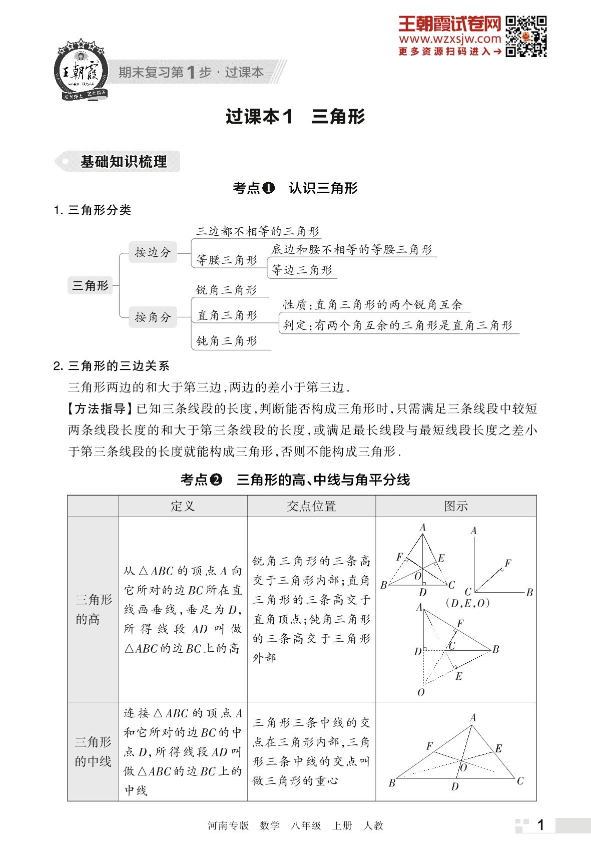 王朝霞期末过课本——1 三角形八年级上册数学(人教版)