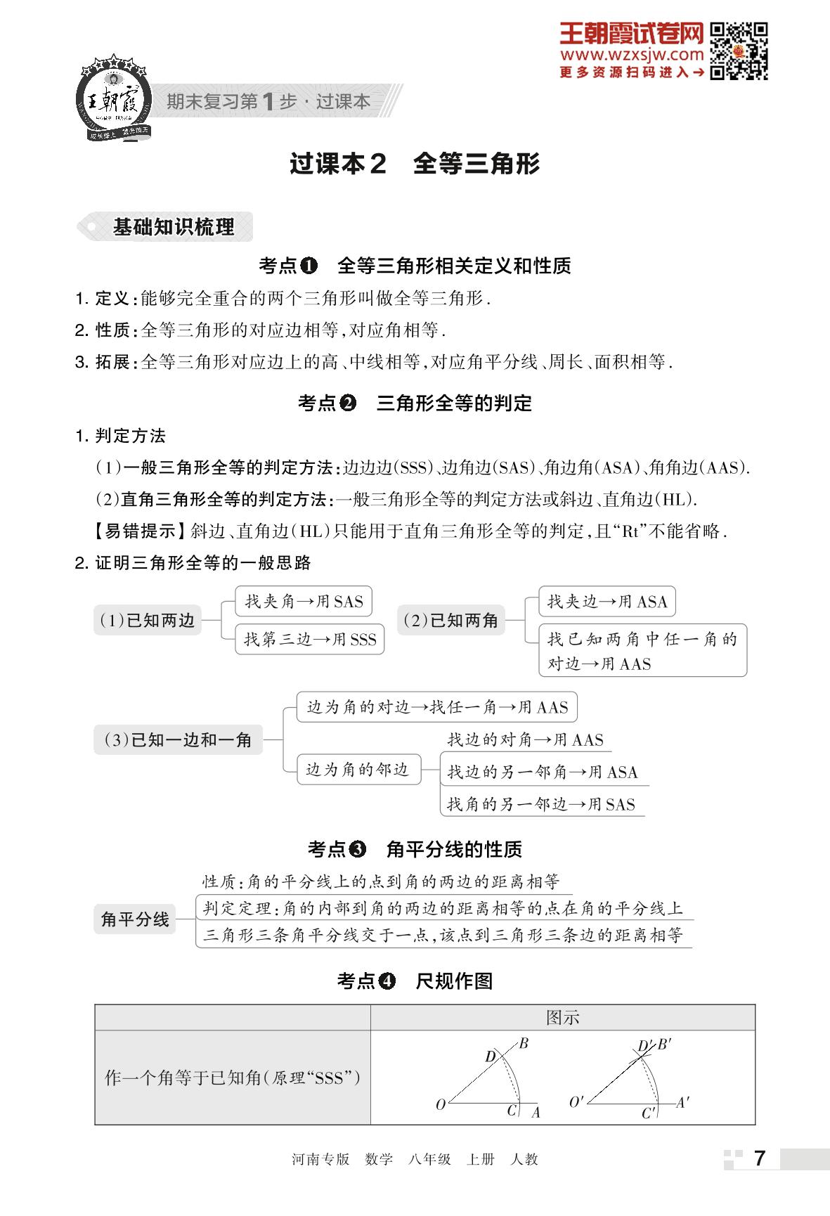 王朝霞期末过课本——2 全等三角形八年级上册数学(人教版)