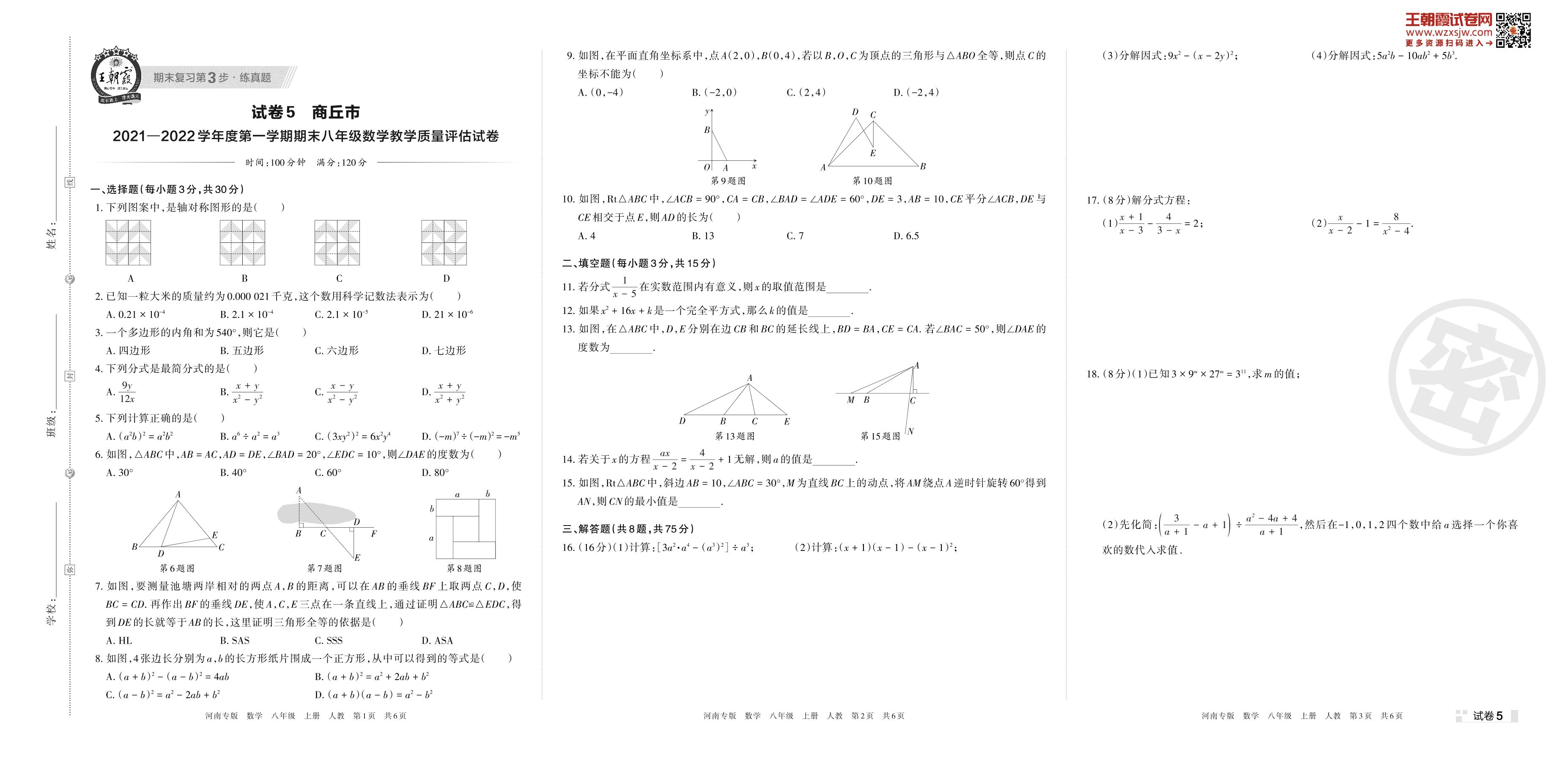 商丘市2021—2022学年度第一学期期末八年级数学教学质量评估试卷(人教版)【5】