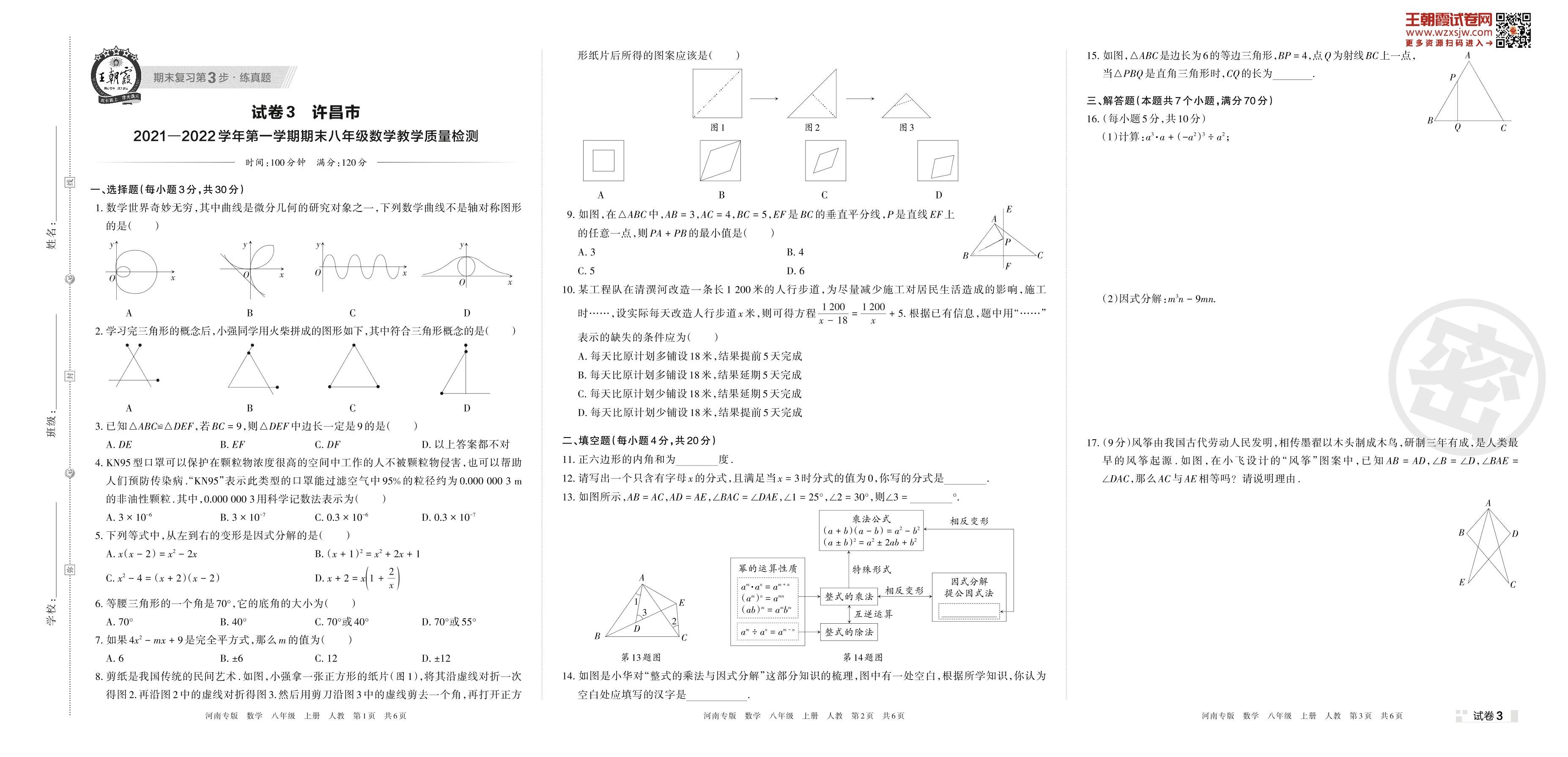 许昌市2021—2022学年第一学期期末八年级数学教学质量检测(人教版)【3】